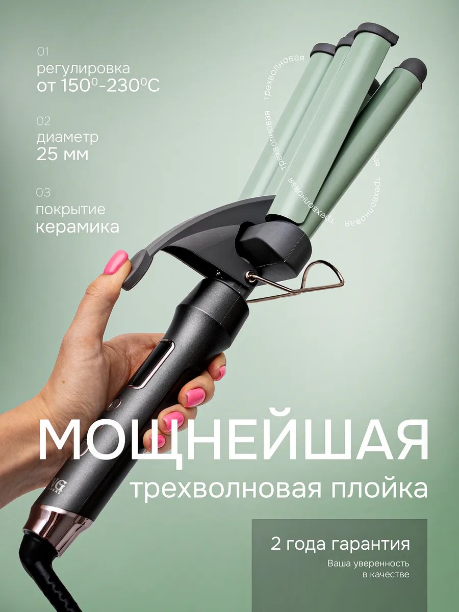 Плойка волна для завивки локонов King professional с керамическим покрытием подходит как для домашнего, так и для профессионального ухода, с лёгкостью создает незабываемый образ. Стайлер 3 в 1 предназначен для создания кудрей. Такая бытовая техника подходит для любого типа волос и имеет функцию регулирования температуры с индикатором. Профессиональная тройная плойка прекрасно дополнит набор для завивки. Щепцы трехволновые крупные имеют термозащитный наконечник, который обеспечивает защиту от ожогов и позволяет сделать завивку афрокудрей абсолютно безопасной. Благодаря функции ионизации, волосы становятся мягкими, шелковистыми и блестящими. Плойка гофре ( гафре) выполнена из прочных материалов , а керамическое покрытие не повреждает волосы. Прибор автоматически выключается через 60 минут, что делает его более безопасным. Перед использованием обязательна термозащита. Эргономичный и продуманный дизайн делает ее удобной в работе, она оснащена шнуром, который вращается на 360°, поэтому риск заломов сводиться к нулю, устраняет чрезмерную пушистость и не электризует волосы. Индикатор с настраиваемой температурой от 150°С до 230°С. Качественное покрытие равномерно прогревается по всей длине, обеспечивает гладкое скольжение и бережный уход, препятствует пересушиванию, сохраняет здоровье и дарит красоту. Подходит для использования в дорожных условиях, дома и даже в парикмахерской. Плойка афро ( 2 в 1 двойная) придаст объем, не допускает спутывания прядок. Идеальный подарок близким!