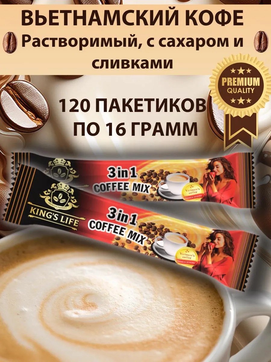 KING'S LIFE Вьетнамский кофе растворимый 3в1 в пакетиках 120 шт
