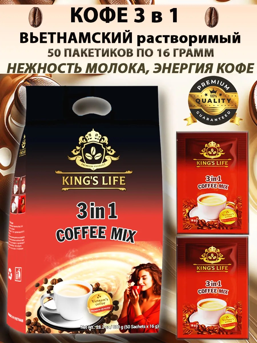 KING'S LIFE Вьетнамский кофе растворимый 3в1 в сашетах 50 шт