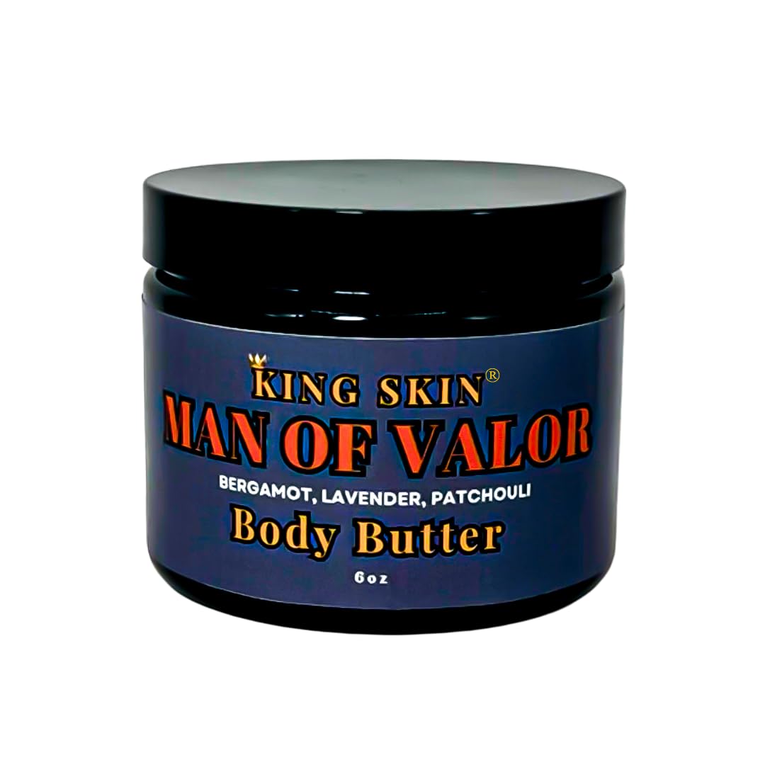 KING SKIN Man of Valor Body Butter I Infused with Fine Fresh Fragrance with notes of Bergamot & Patchouli I Packed with Shea Butter & Avocado I Long Lasting Deep Hydration for Men I 6 oz
