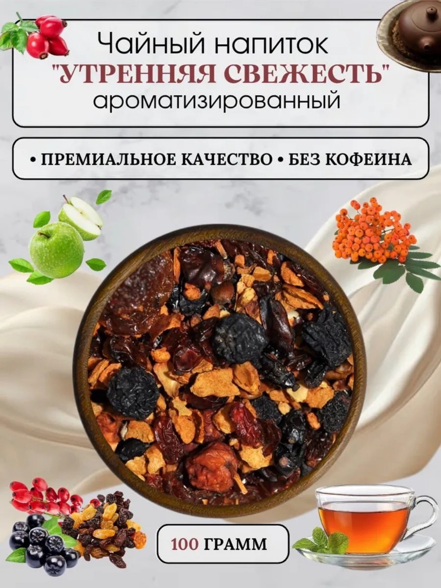 В составе этого чая используются только самые полезные и вкусные плоды: шиповник, яблоки, арония, изюм, барбарис и ягод рябина.