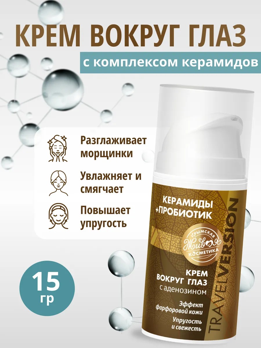 Крем вокруг глаз Керамиды+Пробиотик. Travel Version может использоваться в качестве подарка: девушке, подруге, сестре, куме, маме или коллеге на 8 марта, Новый год (НГ), День рождения или просто так.