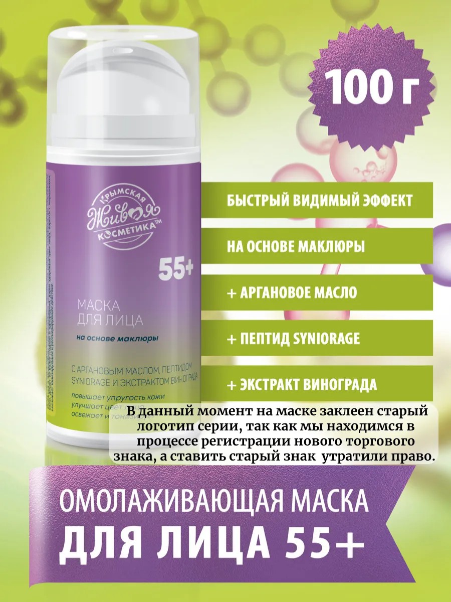 Маска для лица омолаживающая 55+ на основе маклюры