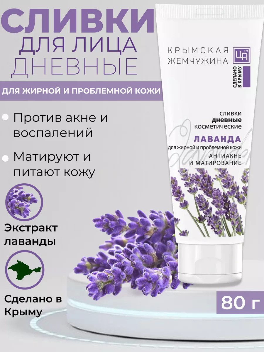 Сливки дневные «Лаванда. Крымская жемчужина» для жирной и проблемной кожи могут использоваться в качестве подарка: девушке, подруге, сестре, куме, маме или коллеге на 8 марта, Новый год (НГ), День рождения или просто так.