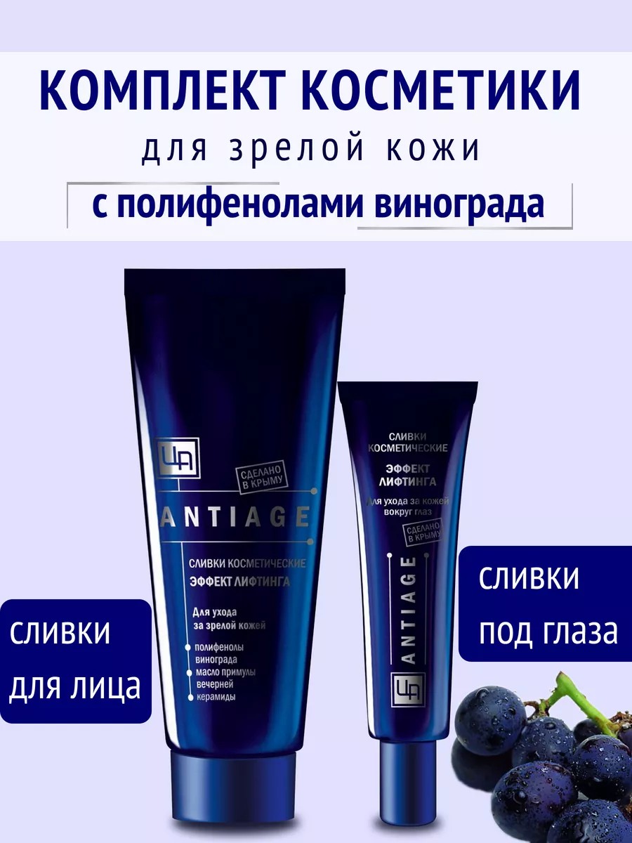 Комплект Сливки под глаза + сливки для лица для ухода за кожей ANTIAGE может использоваться в качестве подарка: девушке, подруге, сестре, куме, маме или коллеге на 8 марта, Новый год (НГ), День рождения или просто так.