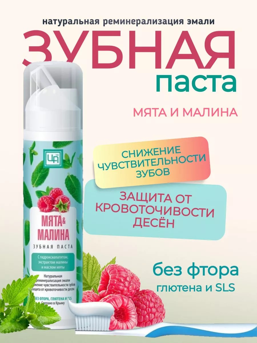 Подарите себе и своим близким лучшее с нашей уникальной зубной пастой "Мята и Малина". Созданная с любовью и заботой, она обеспечивает бережную и эффективную гигиену полости рта для всей семьи.