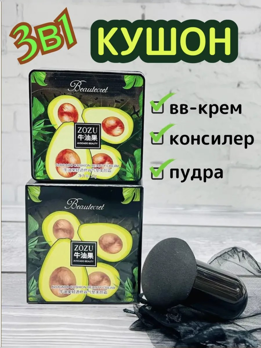 ZOZU - это иновационное уникальное косметическое средство в бьюти индустрии! Этот Крем-кушон с авокадо (тон 02 слоновая кость) включает в себя целых три средства для идеального мэйкапа. Консилер, BB-крем и пудра. Он содержит в себе только натуральные ингредиенты: витамин Е, авокадо, минеральные масла, тальк. Состав полностью гипогалогенный и подходит к любому типу кожи, не вызывая её раздражение, идеально маскирует всевозможные высыпания, но при этом не создает эффект маски, после применения лицостановится гладким и шелковистым с легким сиянием. Консилер имеет нежную муссовую текстуру и представлен в универсальном оттенке, защищает от агрессивных факторов окружающей среды, включая ультрафиолет. Витамин Е сделает вашу кожу упругой и придаст ей эластичность. Авокадо напитает клетки эпидермиса смягчит её и придаст здоровый вид. Он с легкостью маскирует темные круги и скрывает покраснения, выровнит тон, улучшит рельеф и глубоко увлажнит. Тональная основа быстро адаптируется под цвет дермы и ускорит процесс нанесения макияжа. Он идеально матирует любую, даже самую проблемную кожу, убирает жирный блеск, придает фарфоровость. Не забивает поры, некомедогенный. Прекрасен как для дневного повседневного, так и для торжественного вечернего макияжа. Способ применения прост - нужно промокнуть кисть-аппликатор, нанести тонким слоем базу при помощи спонжа равномерно растушевать. Средство красиво упаковано в фирменную коробочку, подойдет как подарок на День Рождения, корпоратив, юбилей, или просто в качестве презента. Порадуйте себя или свою подругу, коллегу с заботой о здоровье и красоте. Любая девушка девочка подросток будет рада и счастилива получить такой сюрприз. Китайская продукция не уступает по качеству и дизайну мировым брендам и популярной корейской косметике. Благодаря Зозу вы будете выглядеть свежо, молодо и сможете ежедневно любоваться и восхищаться красотой вашего образа.
