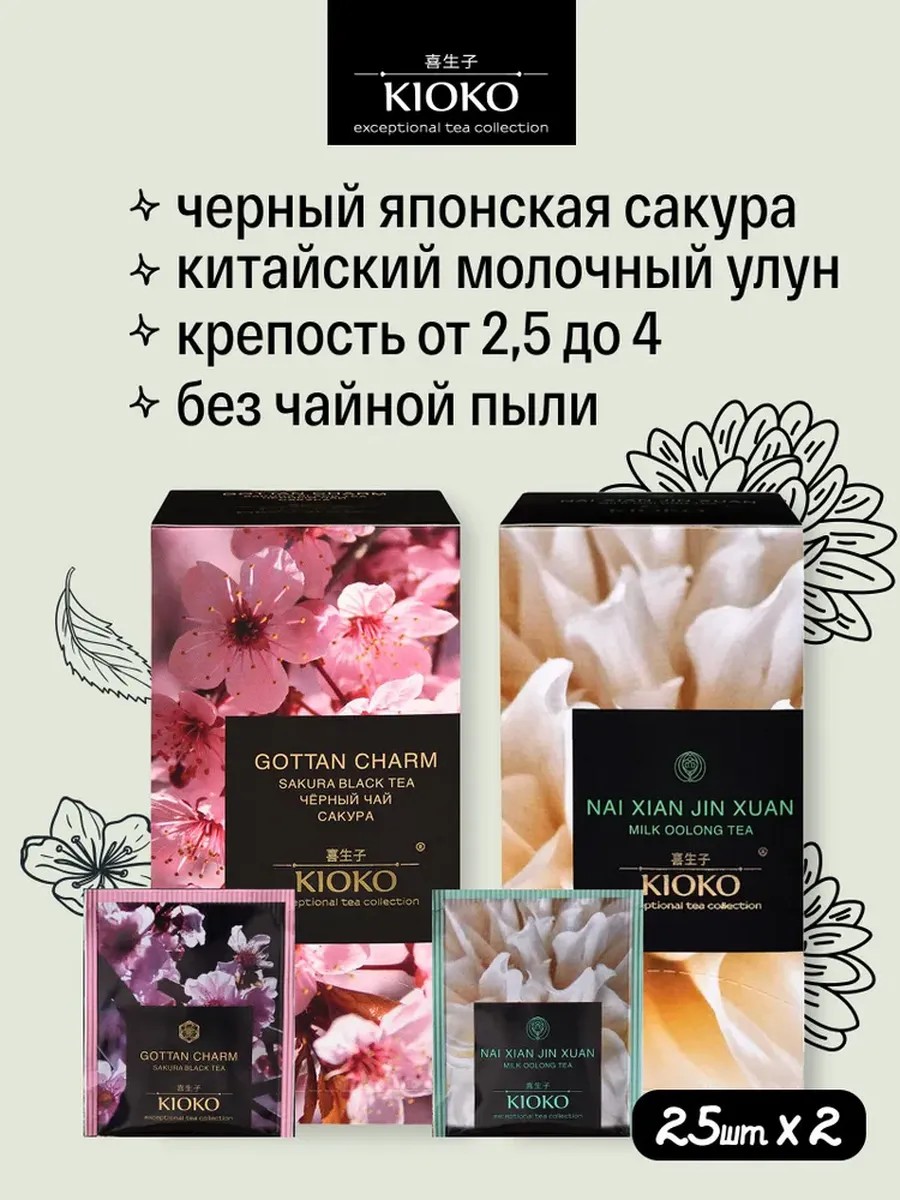 Погрузитесь в мир изысканных вкусов с эксклюзивным набором чая KIOKO Gottan Charm 25/2г + KIOKO Nai Xiang Jin Xuan 25/2г! Этот волшебный дуэт станет идеальным подарком на Новый год, День учителя или 1 сентября, порадуя любимых ценителя чая неповторимым ароматом и вкусом. В каждом пакетике вас ждет настоящий праздник для души: нежный, благородный черный чай с ароматом японской сакуры Gottan Charm и изысканный молочный улун Nai Xiang Jin Xuan, который покорит вас своим бархатистым вкусом и тонким ароматом. Представьте: вы вдыхаете аромат цветущей сакуры, а затем наслаждаетесь чашечкой теплого, ароматного чая, который окутывает вас волной умиротворения и покоя. Этот набор станет настоящим ритуалом наслаждения, который подарит вам незабываемые минуты уюта и гармонии.