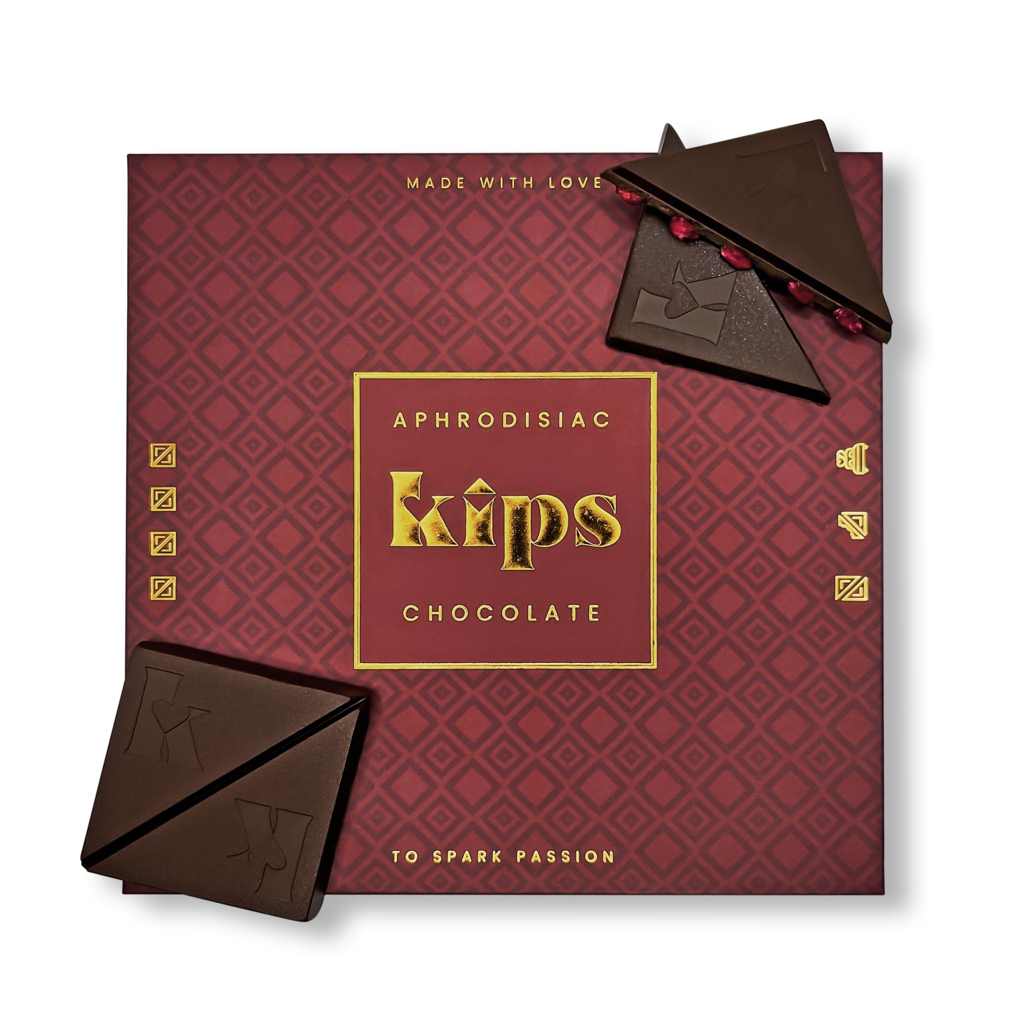 CHOCOLATE IS OUR LANGUAGE OF LOVE! Treat your partner and yourself to our aphrodisiac dark chocolate, specially designed for couples. Crafted from the finest ingredients and enriched with a potent blend of natural aphrodisiacs, our chocolate promises you much more than just a delicious indulgence. OUR FORMULA FOR MORE PASSION Maca Root – Energizing Superfood Known for its revitalizing properties, Maca root is a natural superfood that can boost your energy and stamina. Ashwagandha – Anti-Stress Adaptogen A powerful adaptogen, Ashwagandha helps reduce stress and provides a sense of calm, thus improving your overall well-being. Muira Puama (Bois Bandé) – ian Aphrodisiac Sourced from the depths of the rainforest, Muira Puama is an aphrodisiac renowned for its natural libido-boosting properties. Freeze-Dried Pomegranate Seeds – Fruity Seduction. Pomegranate seeds, rich in antioxidants and essential nutrients, promote blood circulation and support hormonal balance, thus enhancing your performance. SHARE – SAVOR – EXPERIENCE. Serving Suggestions: Embark on a unique sensory journey with Kips aphrodisiac chocolate in three simple steps: Gently break the chocolate in half and share it with your partner. Savor together the captivating blend of fine cocoa, natural aphrodisiacs, and delicious pomegranate seeds. Then, let yourselves be swept away by intense passion and unforgettable intimate moments. INSTRUCTIONS Share – Savor – EXPERIENCEkips Chocolat Aphrodisiaque Noir Cadeau Sensuel pour Couple Désir Connexion Maca, Ashwagandha, Muira Puama, Grenade Fabriqué en Allemagne 1 Boîte – 4 Carrés – 100 gDESCRIPTION DU PRODUIT DESCRIPTION DU PRODUIT LE CHOCOLAT EST NOTRE LANGAGE D'AMOUR ! Faites plaisir à votre partenaire et à vous-même avec notre chocolat noir aphrodisiaque, spécialement conçu pour les couples. Élaboré à partir des ingrédients les plus raffinés et enrichi d'un puissant mélange d'aphrodisiaques naturels, notre chocolat vous promet bien plus qu'une simple gourmandise. NOTRE FORMULE POUR PLUS DE PASSION Racine de Maca – Superaliment énergisant Reconnue pour ses propriétés revitalisantes, la racine de Maca est un superaliment naturel qui peut booster votre énergie et votre endurance. Ashwagandha – Adaptogène anti-stress Puissant adaptogène, l'Ashwagandha aide à réduire le stress et procure une sensation de calme, améliorant ainsi votre bien-être général. Muira Puama (bois bandé) – Aphrodisiaque ien Issu des profondeurs de l'ie, le Muira Puama est un aphrodisiaque réputé pour ses vertus naturelles stimulant efficacement la libido. Graines de grenade lyophilisées – Séduction fruitée Les graines de grenade, riches en antioxydants et en nutriments essentiels, favorisent la circulation sanguine et soutiennent l'équilibre hormonal, améliorant ainsi vos performances. PARTAGEZ – SAVOUREZ – VIVEZ L'EXPÉRIENCE Conseils de dégustation : Partez pour un voyage sensoriel unique avec le chocolat aphrodisiaque kips, en trois étapes simples : cassez délicatement le chocolat en deux et partagez-le avec votre partenaire. Savourez ensemble le mélange envoûtant de cacao fin, d'aphrodisiaques naturels et de délicieuses graines de grenade. Laissez-vous ensuite emporter par une passion intense et des moments intimes inoubliables. MODE D'EMPLOI Partagez – Savourez – Vivez L'EXPÉRIENCE