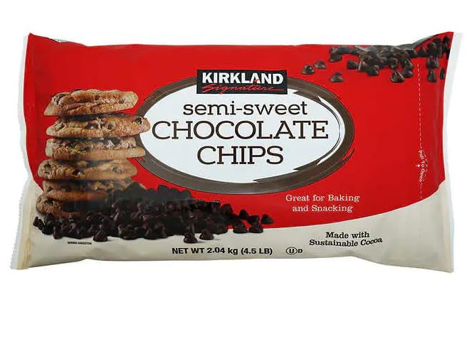 Kirkland Signature Semi-Sweet Chocolate Chips - 2.04KG (4.5LB) - Great For Baking & Snacking - Made With Sustainable Cocoa - Old fashioned Chocolate Chip Cookies