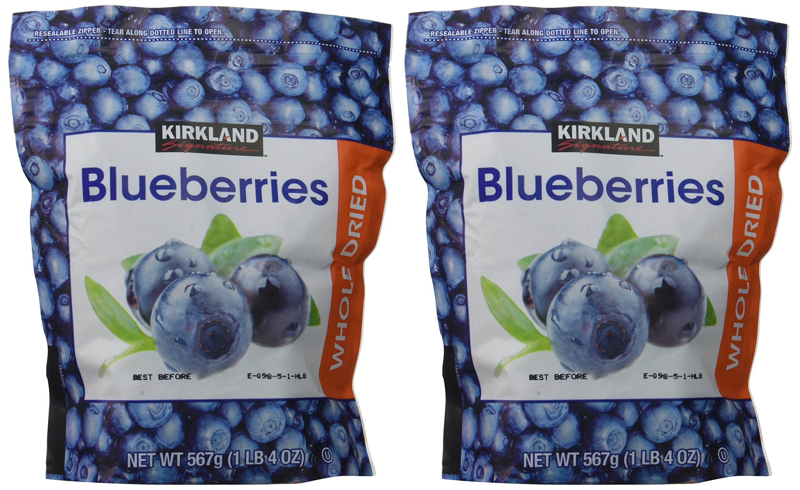 Kirkland Signature Whole Dried Blueberries: 2 Bags of 20 Oz (1 Bag is 1LB 4 OZ which is 20 Ounces) blue 1.25 Pound (Pack of 2)