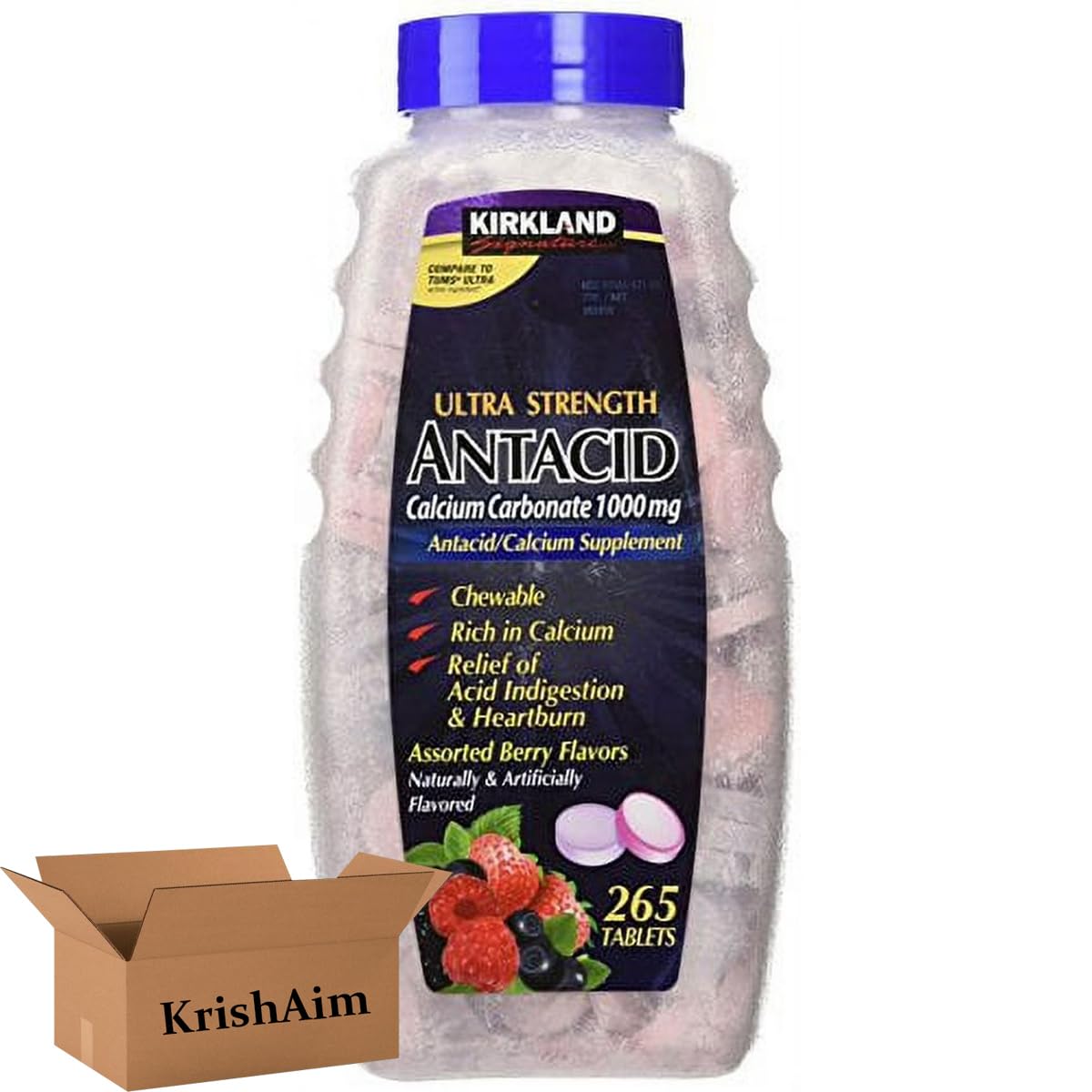 Kirklend Signature Ultra Strength Antacid Calcium Carbonate 1000mg Assorted Berry Flavors Chewable Tablets 265 Count