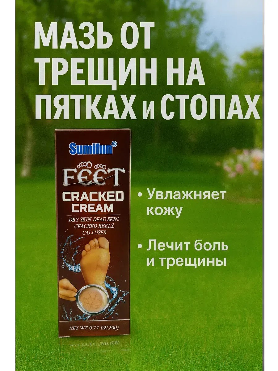 FEET CRACKED CREAM от Sumifun — ваш надёжный помощник в борьбе с сухостью и трещинами кожи. Регулярное применение вернёт вашим стопам и рукам мягкость, ухоженность и комфорт.