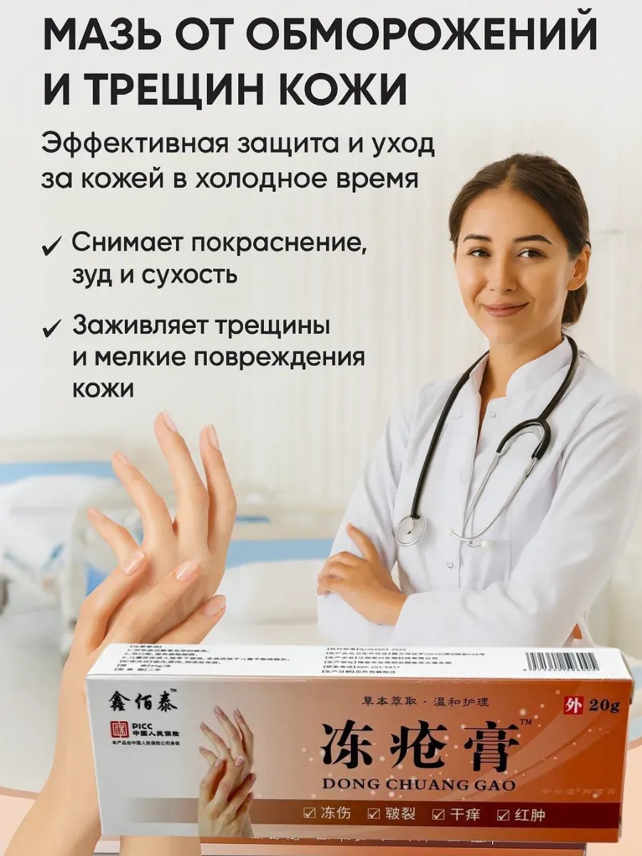 Мазь от обморожений и трещин кожи Dong Chuang Gao – это эффективное средство для защиты и восстановления кожи в холодное время года. Когда на улице мороз, ветер и сухой воздух, кожа рук и ног начинает страдать: появляется сухость, покраснение, зуд, трещины. Иногда даже простое обветривание превращается в боль и дискомфорт. Именно в такие моменты нужна надежная мазь, которая работает быстро и бережно.
