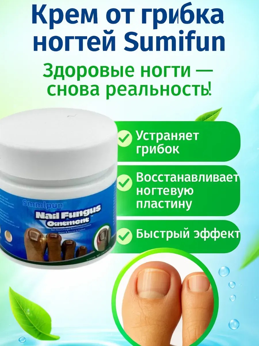 Мазь от грибка ногтей . Устраняет инфекцию . Помогает для лечения ногтей , онихомикоза , ухода за кожей стоп и рук увлажняет питает даже самые сухие ногти и стопы . Наш мазь это самый надёжный помощник в борьбе с грибком ногтей и трещинами - для тех кто заботится о своих пятках и ногами . Избавляет от трещин на ногтях и околоногтевых валиках . Используется и для лечея ногтей и на руках и на ногах так же для кутикулы . При педикюре маникюре . Этот крем увлажняет ногтевую пластину и ускоряет процесс ее восстановления . Активные вещества основаны на натуральных компонентах проникают в глубокие слои ногтя и ногтевого ложа оказывая противогрибковое действие и защищает от повторного грибка на любой стадии для дедушек для бабушек женщин мужчин детей - после бани бассейна инфекция со всем справится наш противогрибковый крем . редство предназначено для лечения и восстановления ногтей, поражённых грибковой инфекцией. Обладает антибактериальными и противогрибковыми свойствами. Быстро проникает вглубь ногтевой пластины, помогая устранить такие проблемы, как ломкость ногтей, помутнение, утолщение и деформация. Крем помогает снять воспаление, ускоряет восстановление, питает и защищает ногтевую пластину.