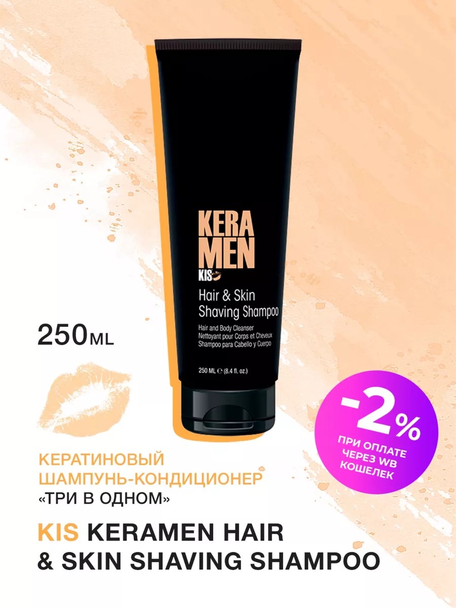 Кератиновый мужской шампунь-гель для душа KIS KeraMen Hais & Skin Shaving мягко очищает волосы и кожу, восстанавливает баланс влаги и поврежденную структуру волос. Противодействует возникновению перхоти, выпадению волос, а также стимулирует их рост. КИС КераМен - один из лучших шампуней от перхоти и выпадения волос для мужчин.