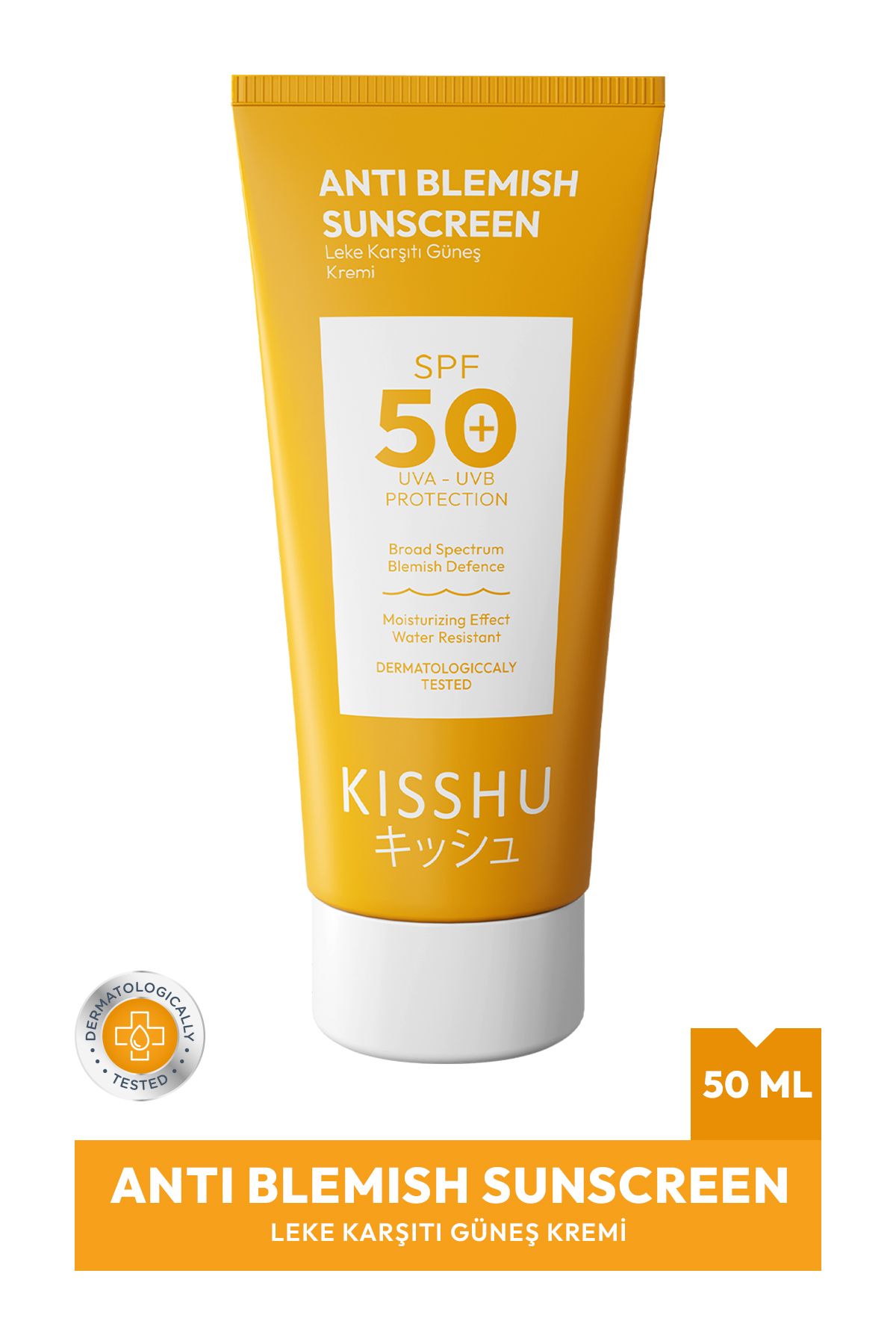 • SPF 50 Anti-Blemish High Protection Sunscreen for All Skin Kisshu sunscreen, with its completely natural content, protects the skin against the harmful effects of the sun and also helps the skin maintain its moisture balance. It helps prevent skin blemishes and signs of aging caused by the harmful rays of the sun. Its quickly absorbed formula leaves your skin feeling soft and provides ultra protection against UVA and UVB rays.