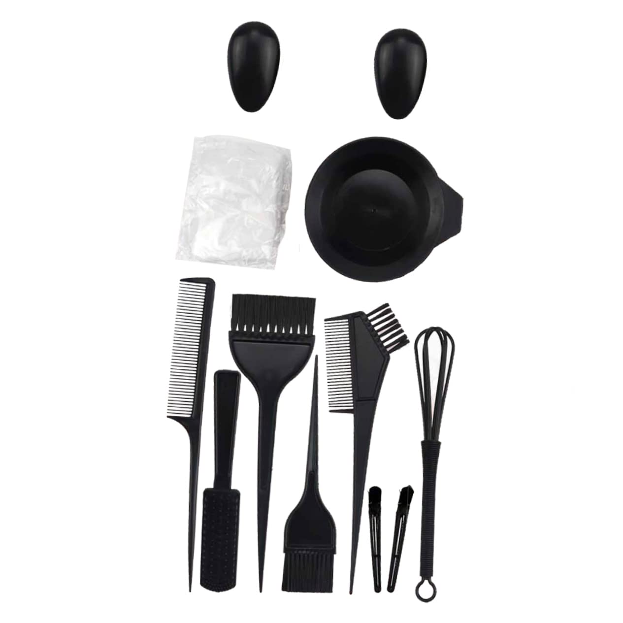 Package List: 1 set 12 pieces of hair coloring tools. Features: - Color: Black hair coloring brush. - Size: 12.50 x 11.60 x 3.00 cm 4.91 x 4.56 x 1.18 inches. Hair coloring bowls. - Material: Plastic hair coloring application brushes. - Easy to use and reusable, anti-static and heat-resistant bowl and brush for hair coloring. - Make your hair coloring experience easy, neat, and clean. They are designed to ensure even and smooth application of hair color from the bowl. - Suitable for all hair styles, long or short hair, curly or straight hair. - The hair coloring kit allows you to color your own hair in a much simpler and more enjoyable way. Hair salon color bowls. - The hair color mixing kit contains everything you need to color your hair and achieve beautiful results. : Hair Styling Kit. This set of tools is practical and easy to use. Hair color application brushes: You can easily use them. Hair salon color bowls: Choose one to make your hair look beautiful. Hair coloring bowls: They are made of a durable material. Hair brushes: Suitable for salon or home use, these are necessary accessories for hair coloring, etc.