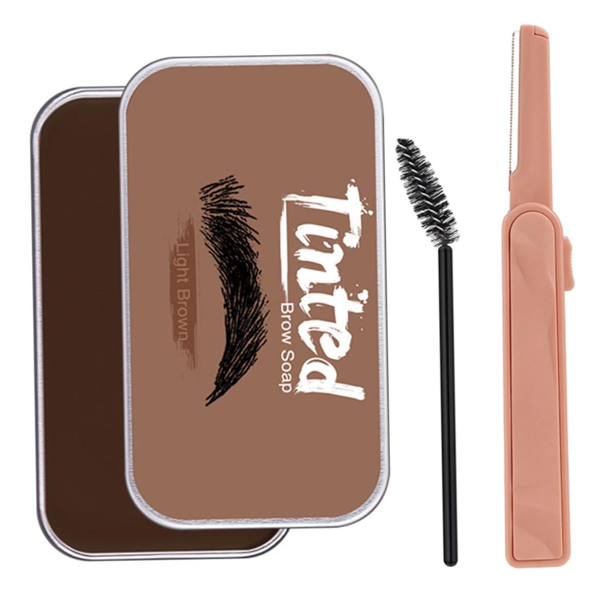 Kit de savon à sourcils, cire modelante longue durée, avec brosse tondeuse à sourcils marron, kit de maquillage professionnel pour définis