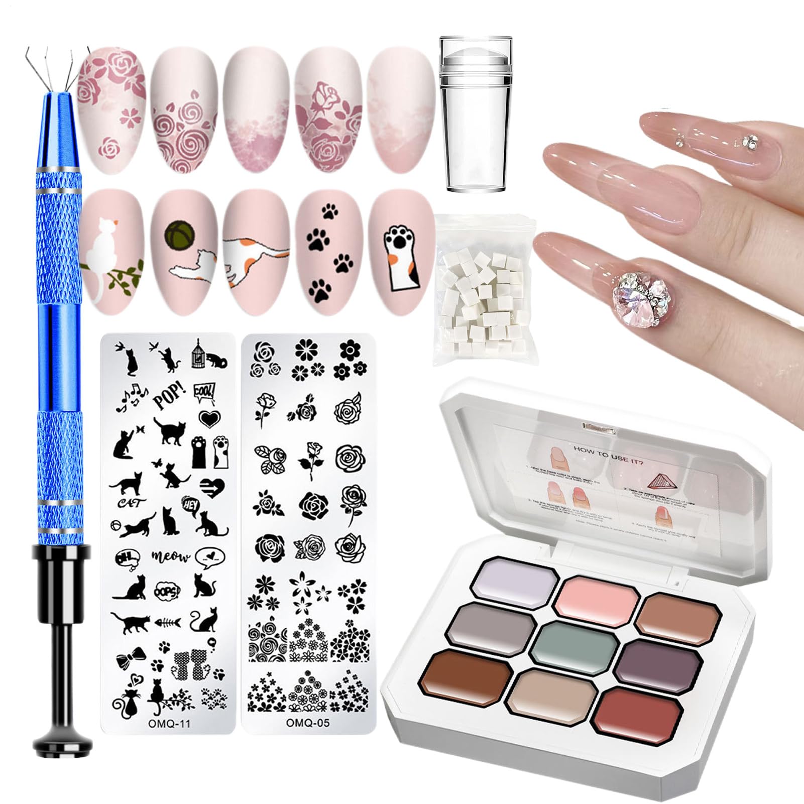 Kit de vernis gel solide Kit d'éponges de peinture pour vernis – Pat Art dégradé manucure avec éponges et pince en métal pour salon créatif d'ongles