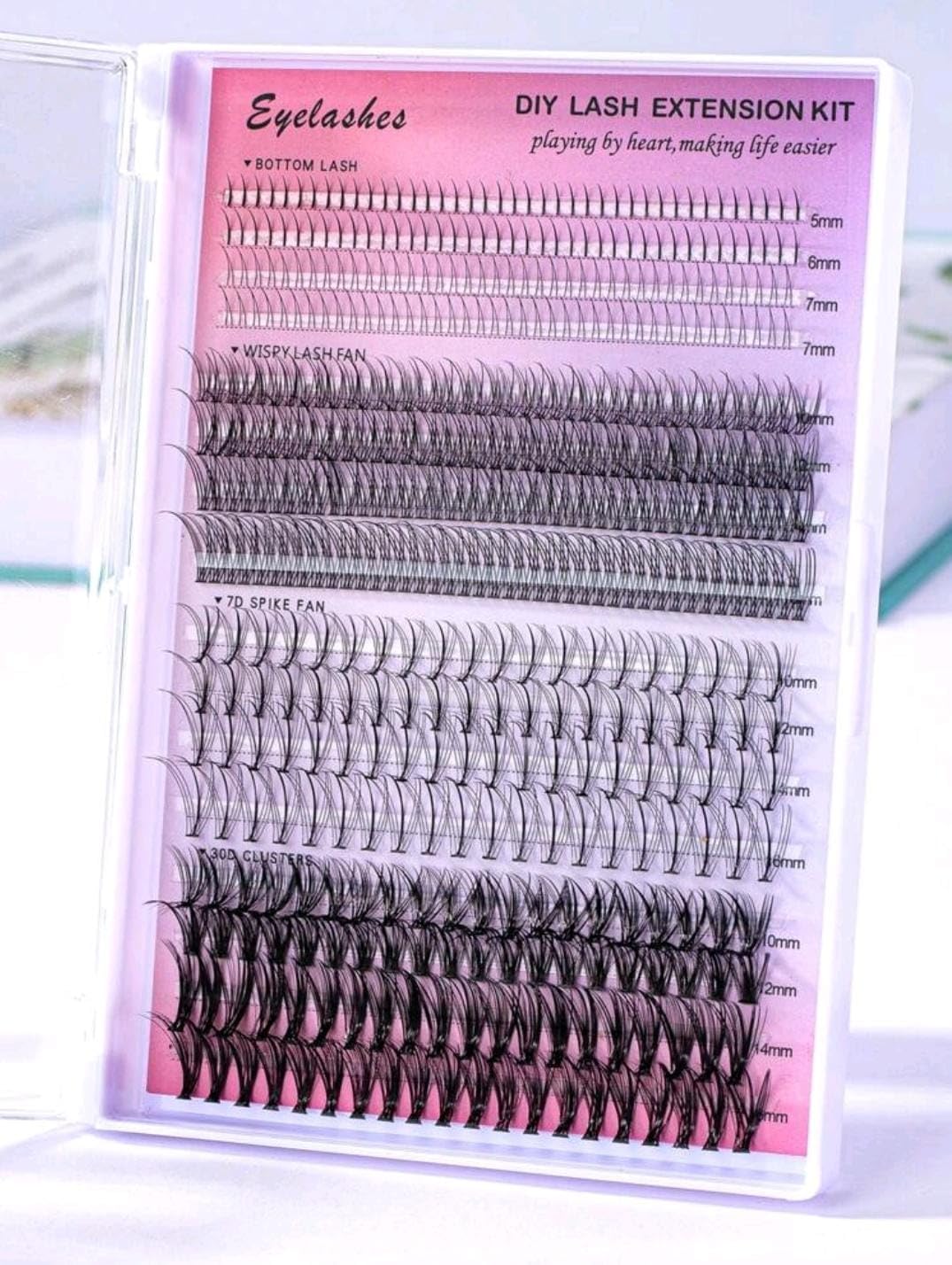 Kit extension de pestañas DIY 480 piezas de grupos de pestañas individuales, pestañas de volumen para autoaplicacion en casa.