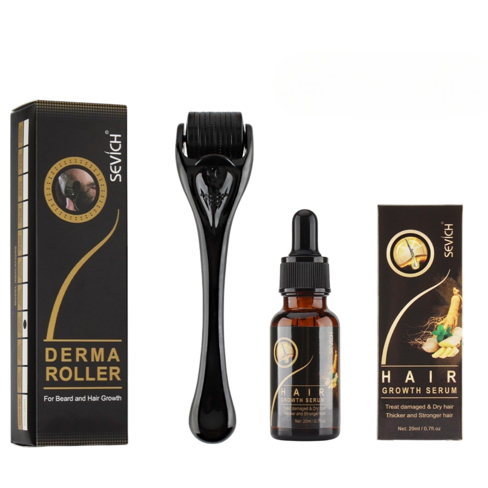 Kit Sérum Croissance Cheveux au Gingembre Derma Roller Sérum Pousse Rapide Anti-Chute Huile Germinale Naturelle Soin Capillaire Homme Femme