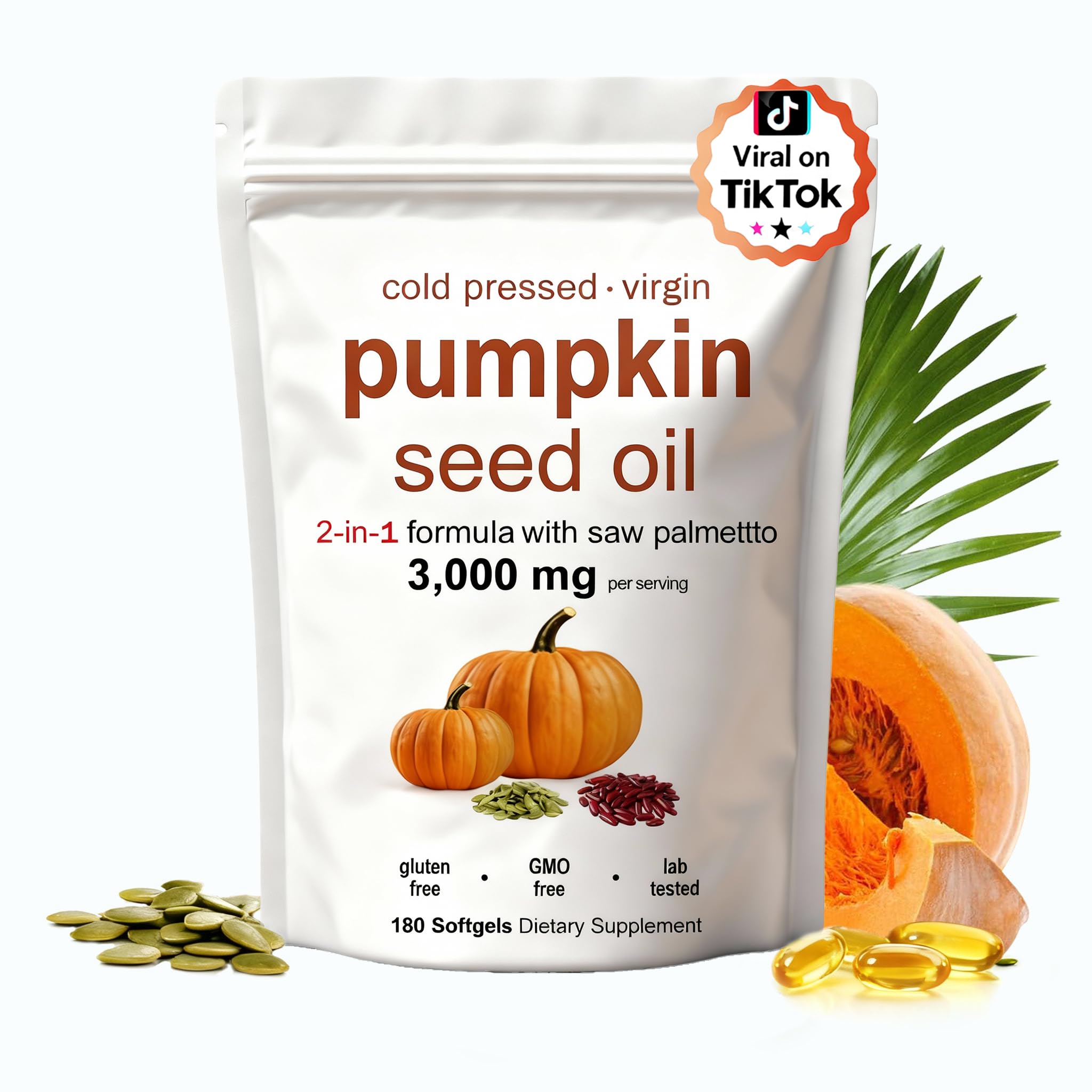 v Your Satisfaction is Guaranteed We stand behind the quality of our product. If you are not fully satisfied with your purchase, you can contact us for a full refund. Your happiness is our priority. v Convenient 60-Day Supply Each bottle contains 180 easy-to-swallow softgels, providing a full 60-day supply. This makes it simple to maintain your consistent daily wellness routine. v Pure Clean Formula We are committed to purity. Our non-GMO formula is free from soy, gluten, dairy, and artificial additives, made with clean ingredients for your peace of mind. v Nourishes Healthy-Looking Hair Pumpkin Seed Oil is naturally rich in nutrients that help nourish your hair from within, supporting the maintenance of strong and full-looking hair. v Gently Extracted Nutrients Our Pumpkin Seed Oil is obtained through a careful cold-pressed process. This method helps preserve the natural goodness and beneficial compounds of the oil. v Potent Plant-Based Blend This formula features a combination of Cold-Pressed Pumpkin Seed Oil and Saw Palmetto Extract. This plant-based duo is designed to provide foundational support for daily wellness in both men and women.