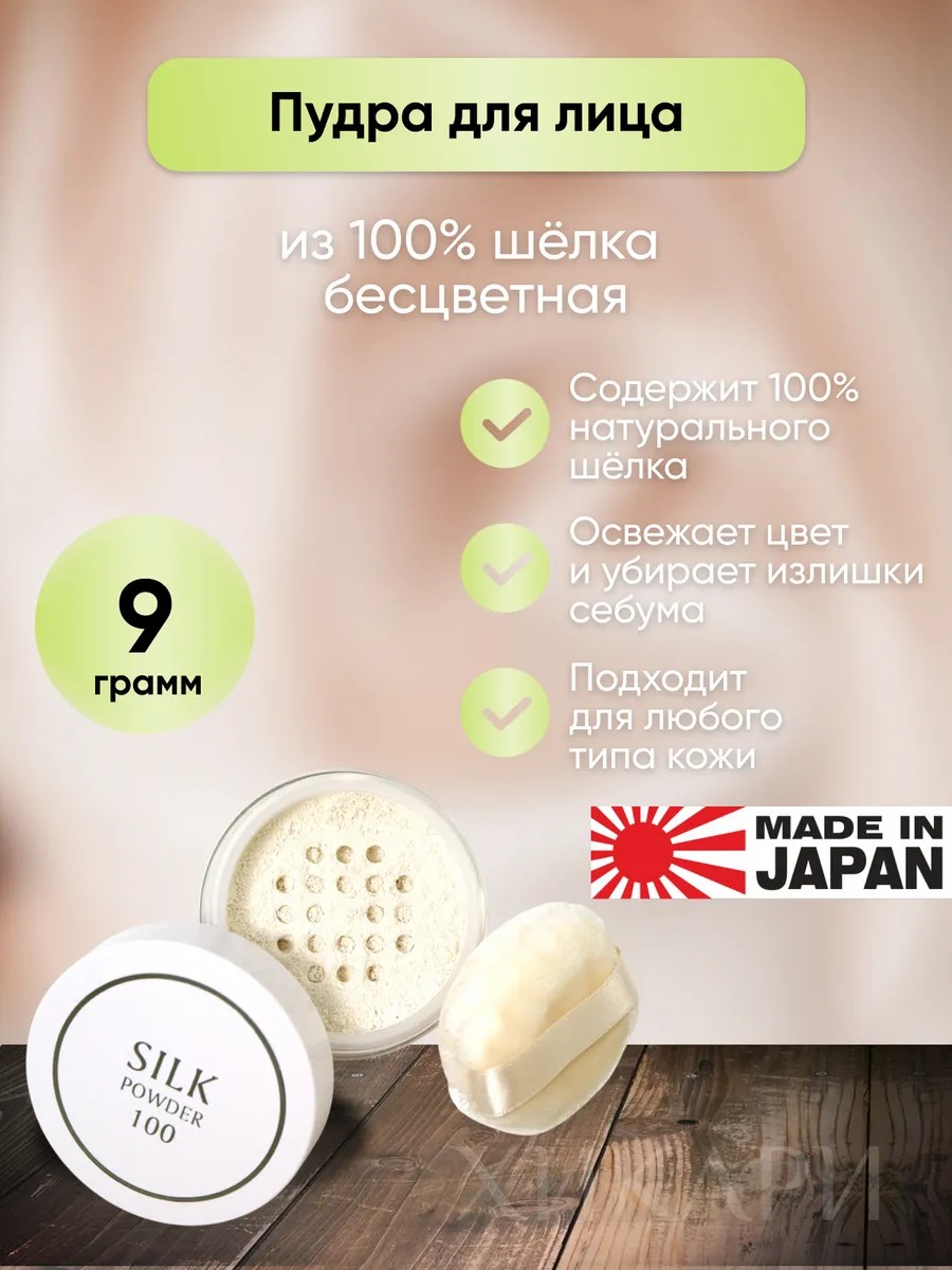 Пудра для ухода за кожей, изготовленная исключительно из шелка, который богат 18-тью аминокислотами. Средство невероятно легкое на ощупь и хорошо впитывает излишки кожного сала. Пудра поддерживает баланс влаги и жира в коже, делая ее гладкой снаружи и увлажненной изнутри, придавая коже красивый вид.