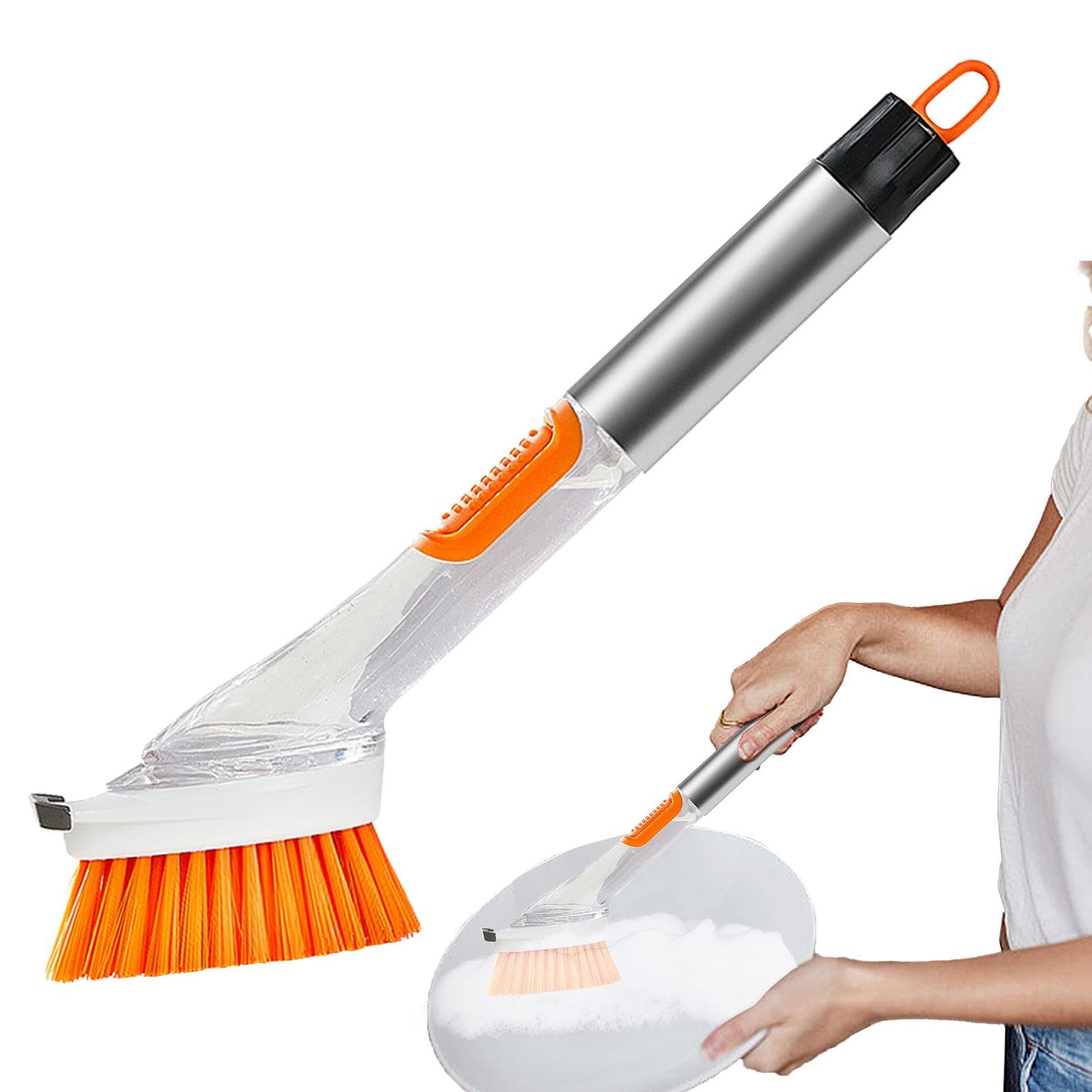 Scrape off tough stains with ease, press to dispense liquid without any leakage, and enjoy odorless cleaning. Perfect for pots, pans, and sink cleaning, our brush is versatile and easy to use. Specification: Name: Kitchen Dish Scrub Brush Material: PP, TPR, stainless steel Color: orange Product size: about 28x21x9cm 11.02x8.27x3.54 inches Weight: 180g Packing: carton Packing List: 1x Kitchen Brush for Pot Pan Sink Cleaning 1x Paper box Note: Due to different lighting and screen settings, the item color may be slightly different from the picture. Due to different manual measurements, please allow a 1-2cm difference in size.Wide Application: Our kitchen dish scrub brush provides wide applications, efficiently scrubbing plates, sinks, pots, bowls, and even cast iron frying pans, making it a valuable addition to your kitchen cleaning supplies. Hygienic Dishwashing: Our kitchen dish scrub brush is crafted with good quality, food grade material, ensuring a safe and hygienic dishwashing experience. Made of sturdy and odorless high-quality material, it ensures effortless cleaning while maintaining a high of safety. No-Ensure: Experience the power of our Kitchen Dish Scrub Brush, featuring a 360 fully encapsulated button for a seamless seal, ensuring no leakage and a leak-proof, integrating seal for pristine dishes every time. Convenient to Use: Enjoy an effortless cleaning experience with this Kitchen Dish Scrub Brush. Simply press to dispense liquid and let the brush do the work while keeping your hands clean and dry. Perfect for hassle-scrubbing of pots and pans. Revolutionary Design: Equipped with a TPR adhesive pad, this scrub brush tackles tough stains without damaging cookware, ensuring a gentle yet effective clean.