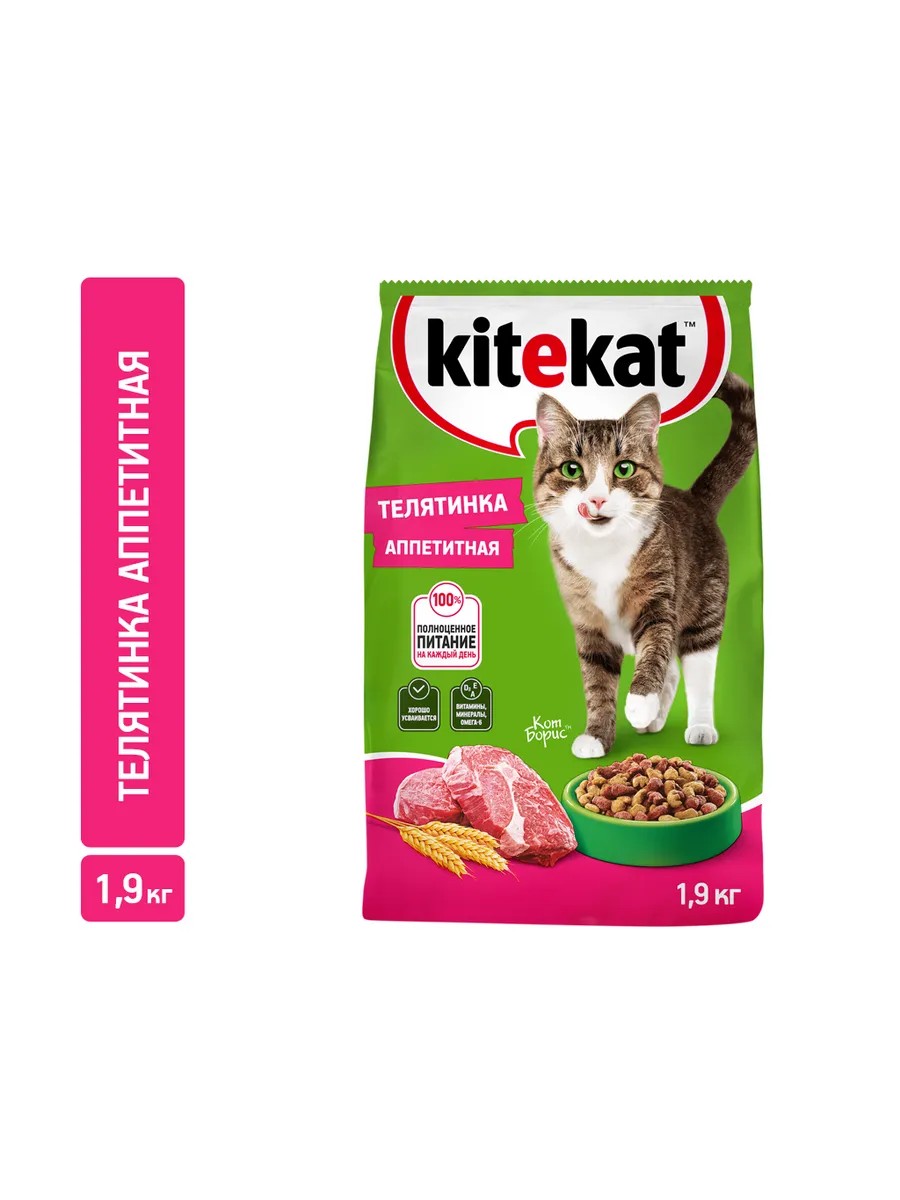 Kitekat Сухой корм для кошек, телятинка аппетитная, 1.9кг