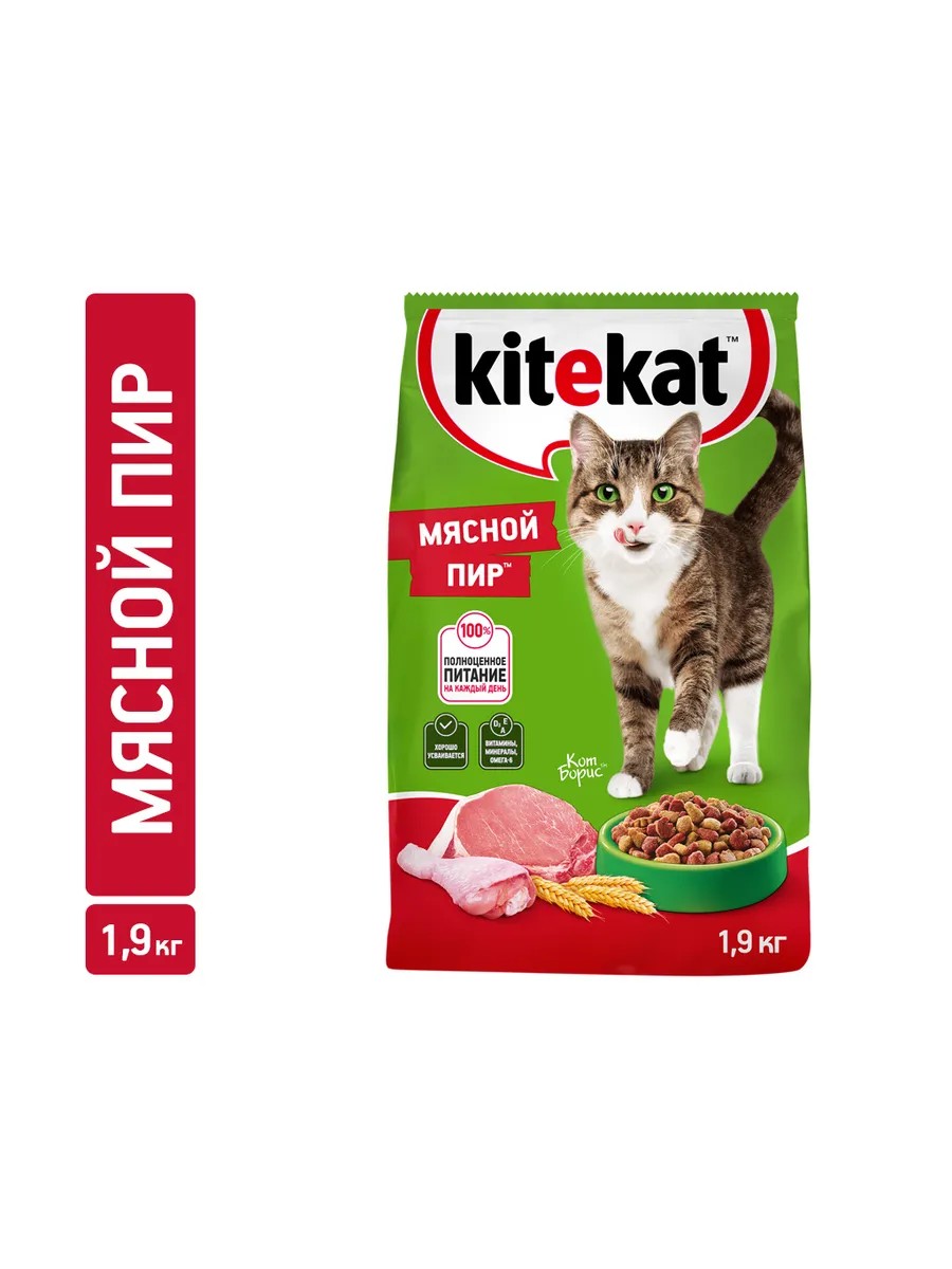Полное наименование товараКорм сухой для кошек KITEKAT Мясной пир, 1,9кг