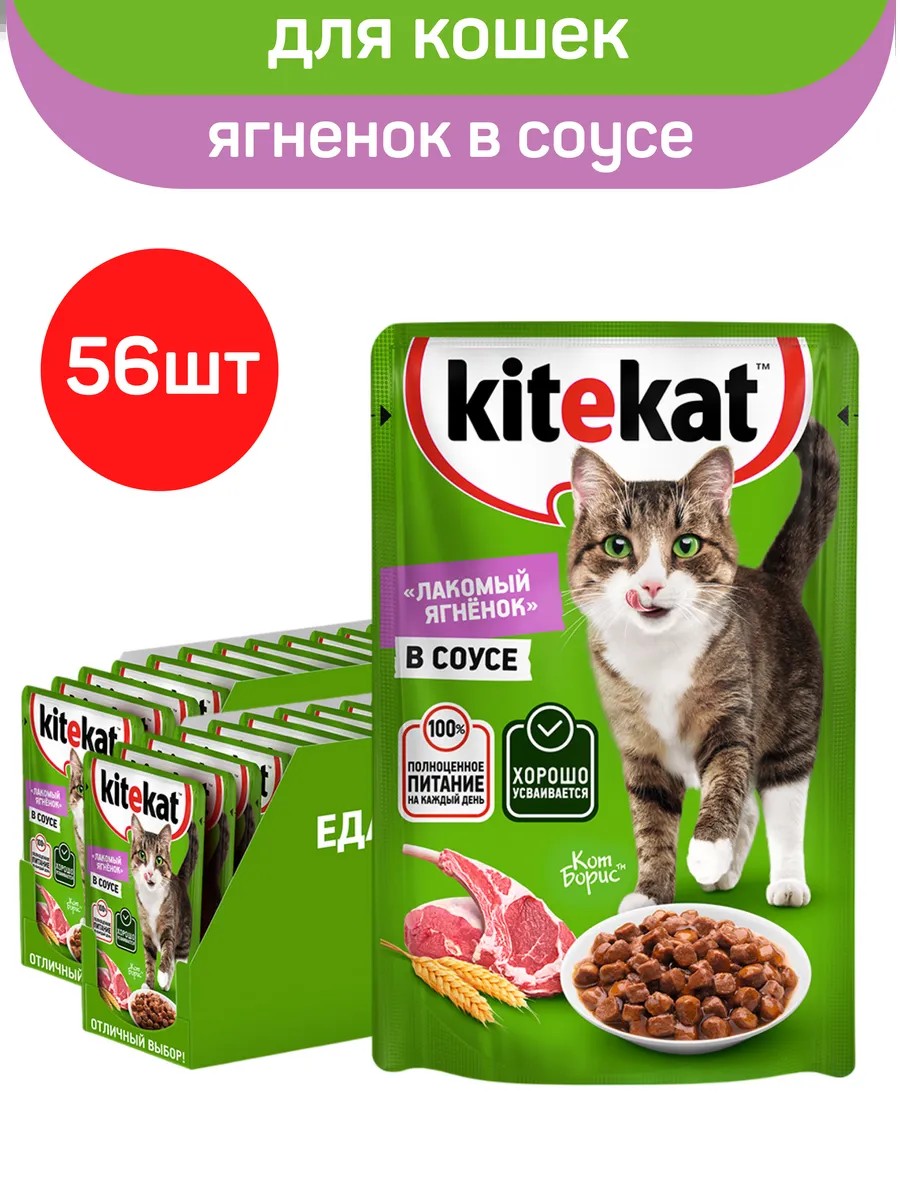 Kitekat Влажный корм для кошек, ягненок в соусе, 56шт по 85г