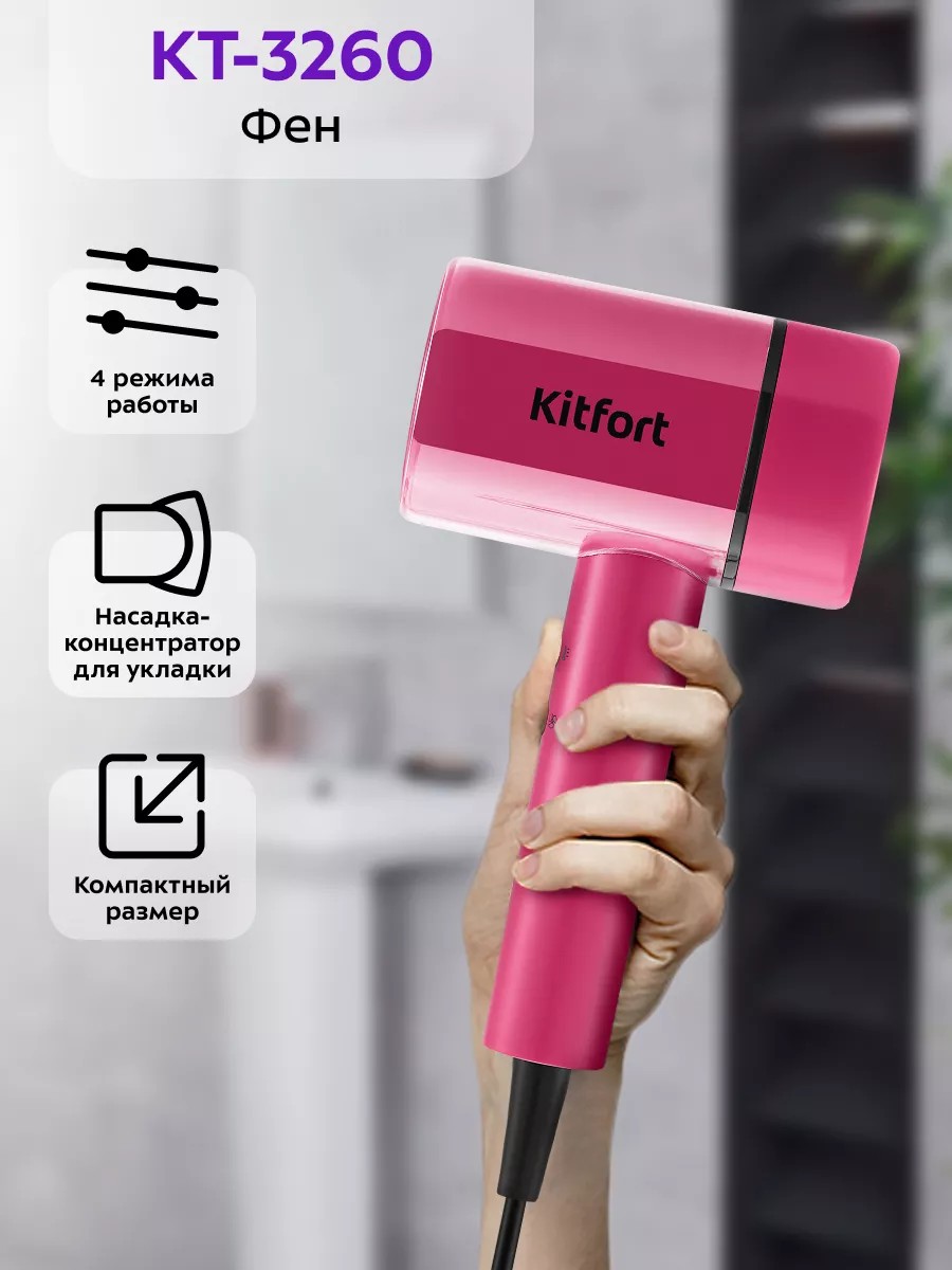 With the Kitfort KT-3260 hair dryer, you can dry your hair quickly.
