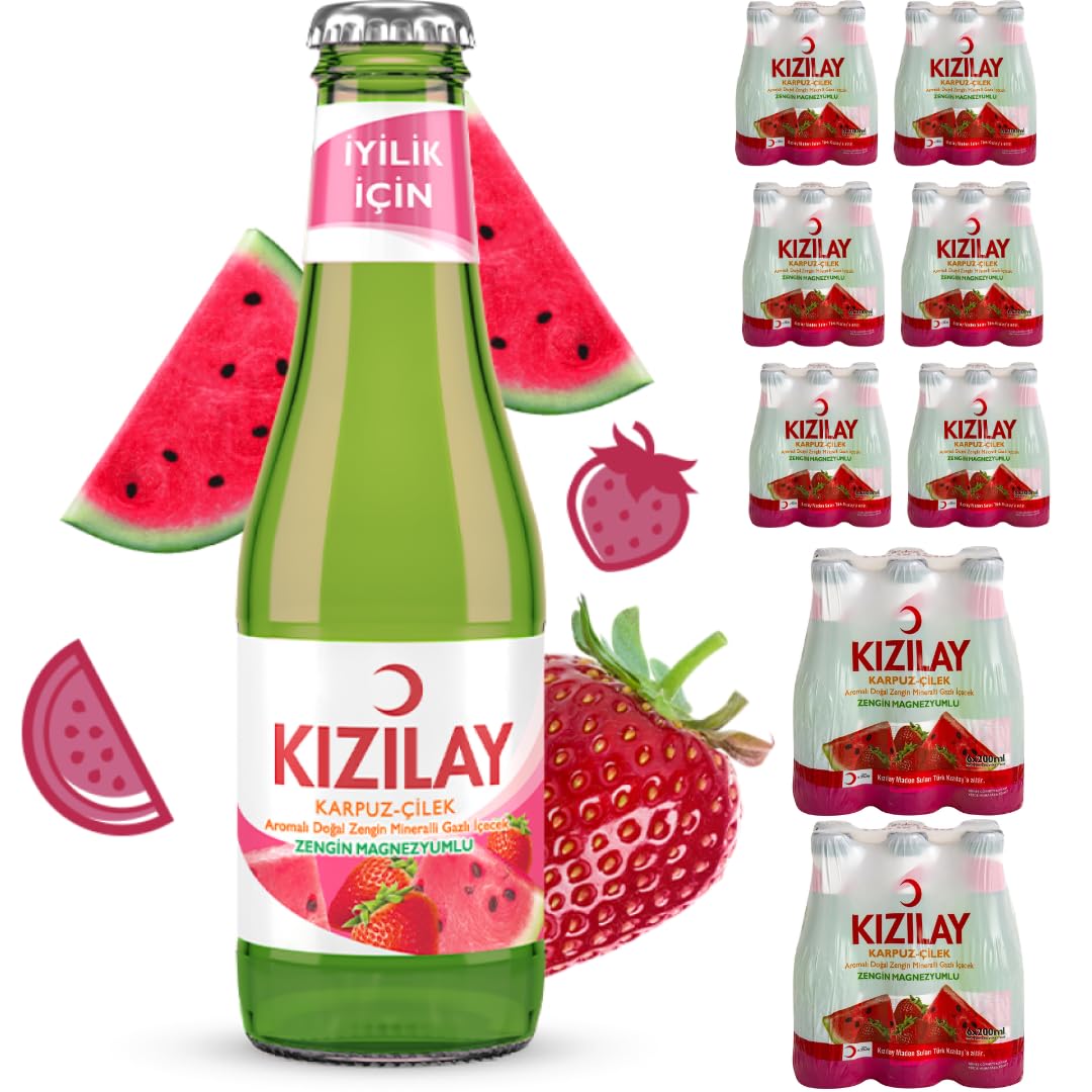 KIZILAY 48 Bottles Natural Mineral Water with Watermelon and Strawberry Flavor Rich Mineral Water with Bicarbonate and Sodium Pufai Grocery