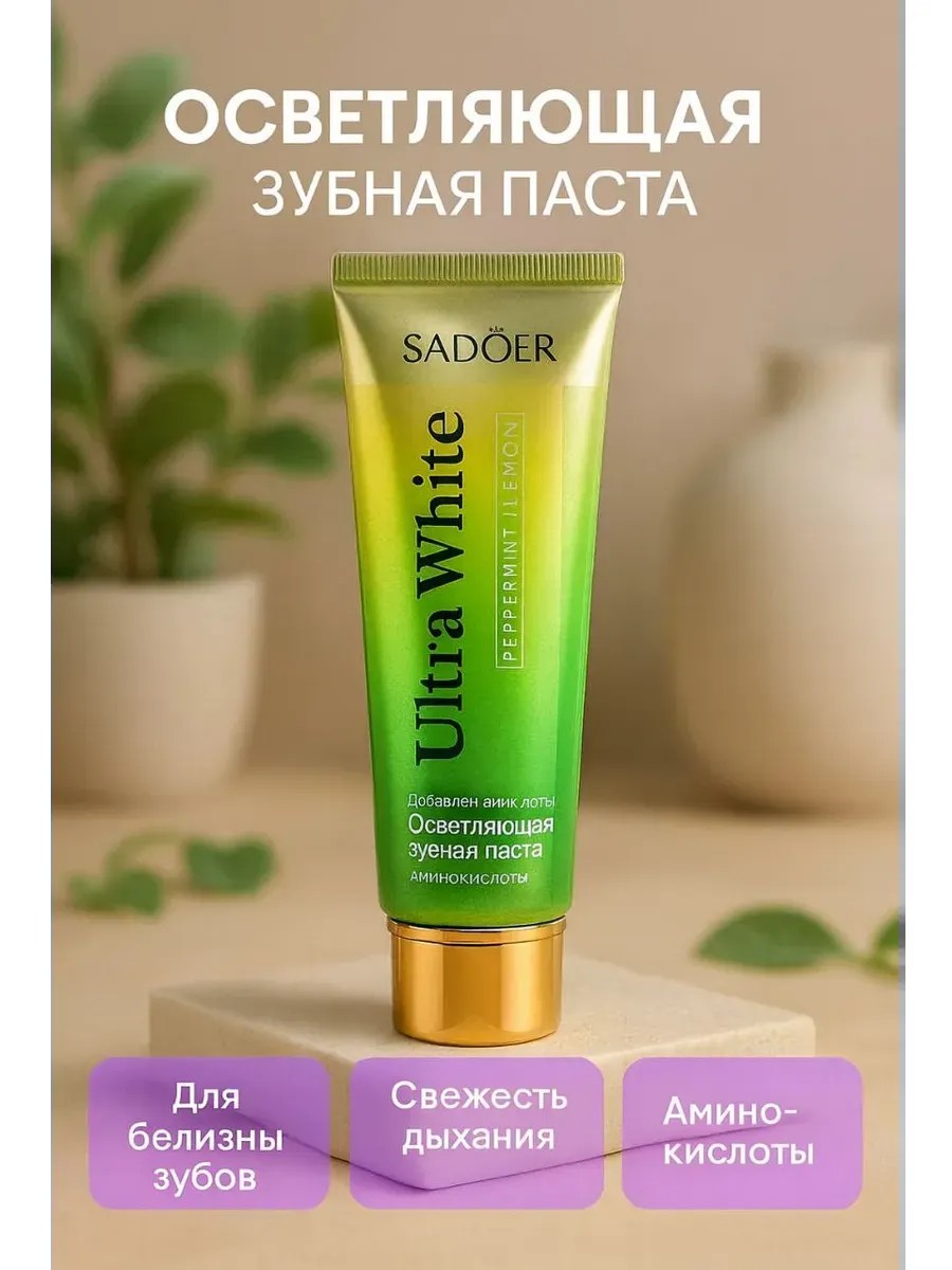 Sadoer Ultra White toothpaste with amino acids, mint, and lemon is an innovative product for comprehensive care of teeth and gums.