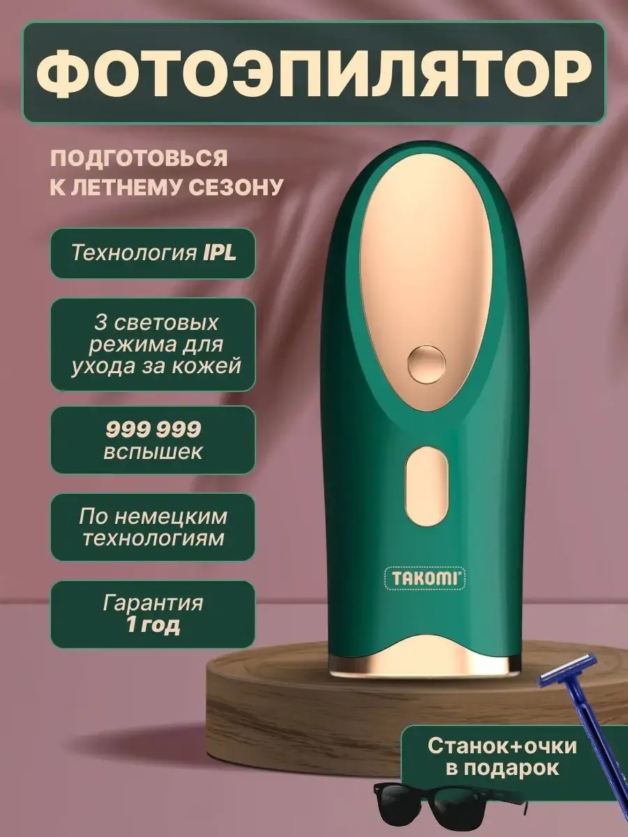 Фотоэпилятор лазерный профессиональный Takomi – это аппарат, который используют лазерное излучение для удаления волос на теле, лице и бикини-зоне. Фотоэпилятор с эффектом охлаждения является одними из самых надежных и эффективных, когда речь идет об удалении волос на длительный срок. Фото эпилятор для лица и тела избавит Вас от нежелательной растительности, а также врастания волос. Лазерный депилятор - бытовая электрическая техника, которая понравится Вам. Эпиляцию можно проводить на любом участке тела. Фотоэпилятор домашний - великолепное средство для Вашей красоты. Еще одно из преимуществ прибор способствует уменьшению вросших волосков, а также обеспечивает интенсивную защиту от врастания. Электрический прибор идеален для использования дома, пригодится всем взрослым женщинам и мужчинам. Благодаря такой универсальной проводной бытовой технике, отпадает необходимость в услугах мастеров бьюти - индустрии. Приобретая ручной фотоэпилятор для удаления волос Вы экономите свое время и деньги на походы в салоны. Фотоэпилятор IPL Такоми - лазер для удаления волос на медицинском уровне. Ведь депилятор имеет 3 режима освещения, что способствует безболезненному удалению волос и оказывает противовоспалительное и антибактериальное действие. При удалении волос на лице и других чувствительных зонах тела epilator обеспечивает мягкий и безболезненный процесс. Стоимость эпилятора окупается за 1 процедуру у косметолога. Короткие лазерные вспышки проникают под кожу через проросший волос. Свет нагревает меланин, пигмент кожи, который находится в луковицах. В результате этого кровь сворачивается и закупоривает сосуд, вводя волосяной фолликулу в спящий режим.