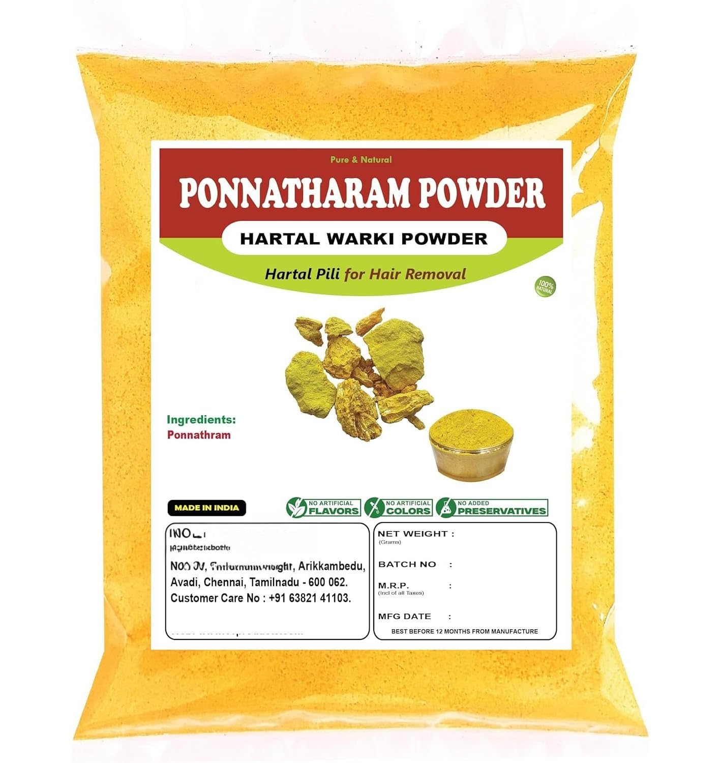 Ponnatharam Powder Hartal Warki Hartal Varki Hartal Pili Harita Manjari Natural Hair Removal No Irritation Suitable for Women, Girls, Boys UnisexCrafted for external use, this powder is designed to help remove unwanted hair gently and effectively.