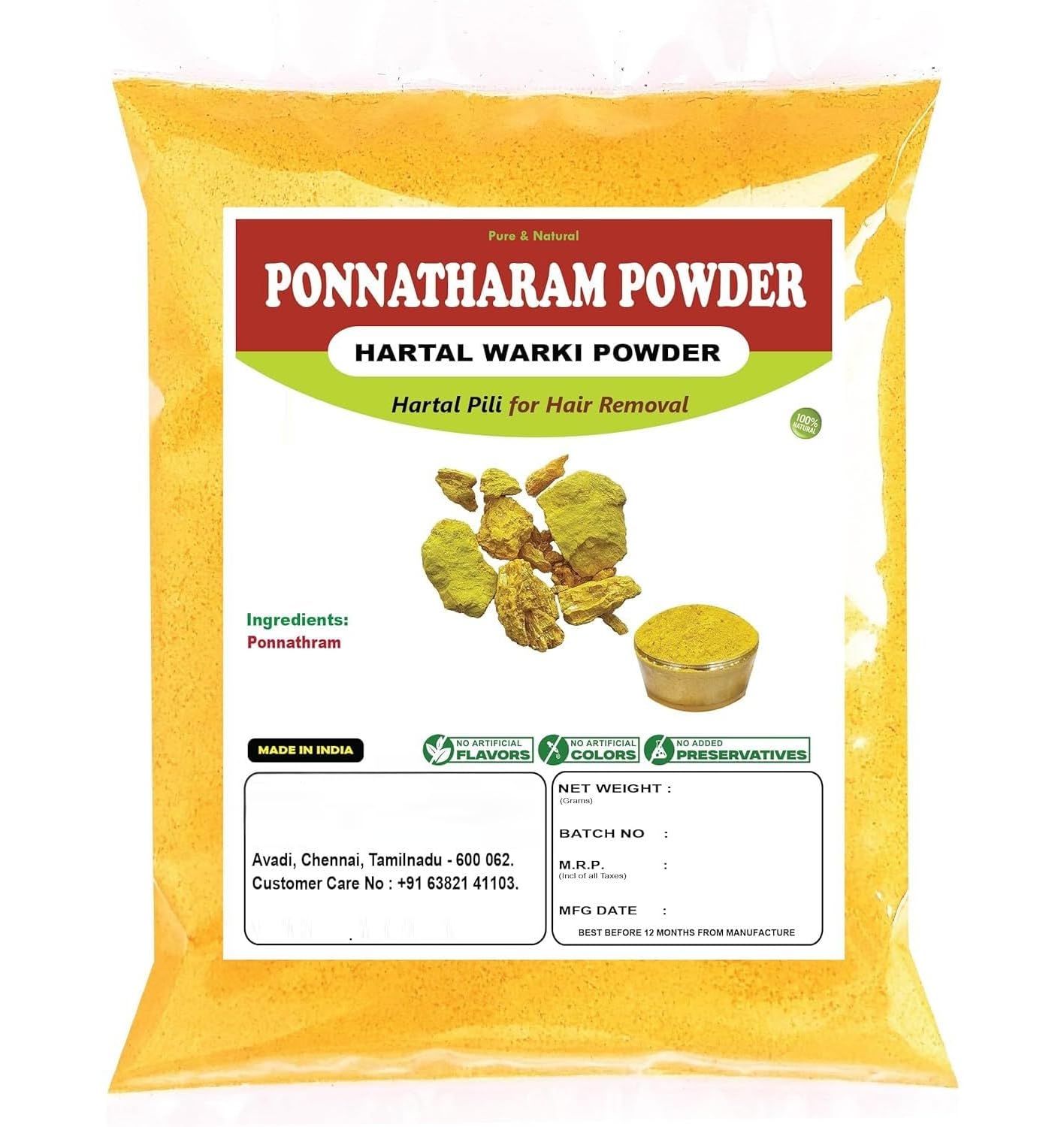 PONNATHARAM Powder Hartal Warki Hartal Varki Hartal Pili Harita Manjari 100 Hair Removal No Pain No Side Effects Suitable for Womens, Girls, Boys and Unisex. PONNATHARAM Powderis the best for removing unwanted Hair in our body. A Perfect Hair Removal Product.