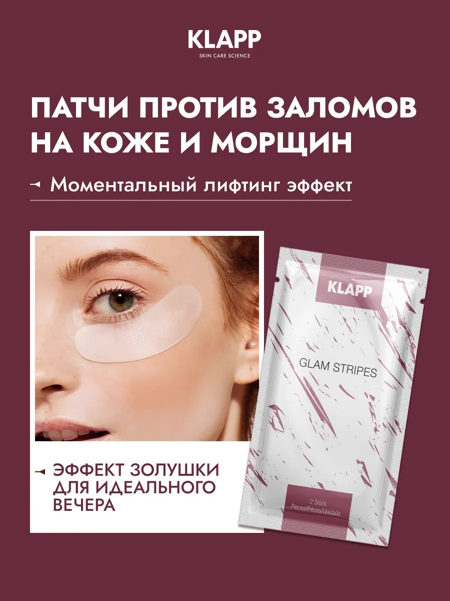 Патчи от отеков и мешков под глазами немецкого профессионального бренда KLAPP давно зарекомендовали себя как SOS средство против морщин. Если вам нужно подготовиться к мероприятию или получить мгновенный лифтинг эффект то тканевые патчи для глаз станут надежным средством. Патчи для глаз содержат в себе ряд питательных масел и сбалансированных экстрактов, которые оказывают антивозрастной эффект и избавляют от темных кругов под глазами, синяков и мешков уже за 15 минут. Патчи для глаз тканевые от морщин разглаживают кожу и питают ее ценными ингредиентами, благодаря чему кожа светится изнутри. Омолаживающие патчи можно использовать для лба, для носогубных складок, на область губ и на лоб. Патчи от морщин на лбу помогают добиться антивозрастного эффекта за короткий промежуток времени. Патчи для глаз тканевые подходят как мужчинам так и женщинам, для любого типа кожи. Патчи для глаз антивозрастные предназначены для борьбы с нежелательными морщинами и складками. Патчи для глаз от отеков и мешков придают коже более молодой, свежий, увлажненный и подтянутый вид. Патчи под глаза наносить на предварительно очищенную сухую кожу. Применение: Выньте тканевые патчи из саше и снимите защитную фольгу, нанесите патчи на липучке гладкой стороной к коже на нежелательные морщины и линии. Время экспозиции омолаживающих патчей минимум 15 минут, для усиления анти эйдж эффекта можно оставить на коже до 60 минут, не смывать. Патчи Золушки интенсивно питают и уплотняют кожу. Патчи для глаз антивозрастные от морщин и отеков уменьшают глубину морщин. Патчи вокруг глаз осветляют кожу и придают ей сияние. Идут в индивидуальной упаковке, в упаковке 1 пара патчей.