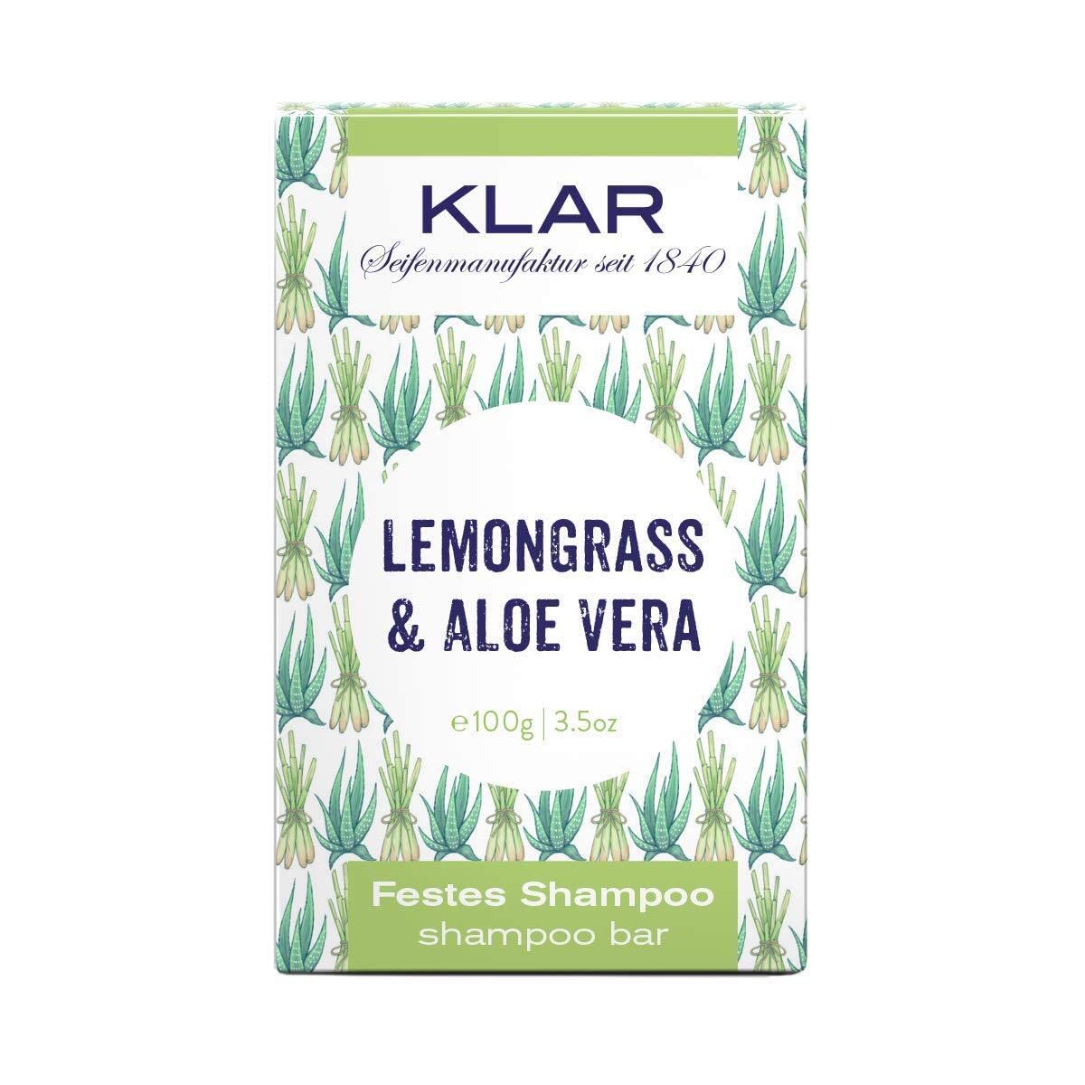 Klarar's Lemongrass and Aloe Vera Solid Shampoo is perfect for hair prone to oiliness. Lemongrass not only degreases the hair but also creates a cheerful atmosphere with its fresh, exotic fragrance. The moisturizing aloe vera gel reduces scalp itchiness and strengthens the hair. Klarar's Lemongrass and Aloe Vera Solid Shampoo is a true superhero against oily hair. Directions for use: Lather the shampoo bar in your hand with water, apply the lather to wet hair (or, alternatively, apply the shampoo bar directly to wet hair), massage the lather, and rinse thoroughly. Benefits of KLAR Solid Shampoo: - Plastic-free and environmentally friendly. - Traditionally handcrafted in Heidelberg. - Extremely economical and sustainable thanks to a lamination process. - No animal-derived ingredients, therefore vegan. - Perfect for holidays, as it won't leak in your bag. - Made without animal testing. Contents: 100 g Ingredients: Sodium Cocoyl Isethionate, Hydrogenated Vegetable Oil, Aqua, Polyglyceryl-4 Laurate, Glycerin, Parfum, Aloe Barbadensis Leaf Juice Powder, Tetrasodium Glutamate Diacetate, Citral, Limonene, Geraniol, Linalool, Citronellol, Potassium Sorbate, Sodium Benzoate, Sulfite.Solid Shampoo "Lemongrass Aloe Vera", Clear SoapsDESCRIPTION DU PRODUIT Le shampoing solide à la citronnelle et à l'aloe vera de Klarar est parfait si les cheveux ont tendance à devenir gras. La citronnelle dégraisse non seulement les cheveux, mais elle apporte également une ambiance joyeuse grâce à son parfum frais et exotique. Le gel hydratant à l'aloe vera réduit les démangeaisons du cuir chevelu et apporte une nouvelle force aux cheveux. Le shampoing solide à la citronnelle et à l'aloe vera de Klarar combine ainsi un super héros contre les cheveux gras. Mode d'emploi : faire mousser le shampooing solide dans la main avec de l'eau, mettre la mousse dans les cheveux mouillés (alternativement passer directement avec la barre de shampooing dans les cheveux mouillés), masser la mousse et rincer abondamment. Avantages du shampooing solide KLAR : - Sans plastique et respectueux de l'environnement. - Fabrication artisanale traditionnelle à Heidelberg. - Extrêmement économique et durable grâce à un procédé de laminage. - Sans ingrédients d'origine animale et donc végétalien. - Parfait pour les vacances, car il ne peut pas fuir dans le sac. - Fabriqué sans expérimentation animale. Contenu : 100 g Ingrédients : Sodium Cocoyl Isethionate, Hydrogenated Vegetable Oil, Aqua, Polyglyceryl-4 Laurate, Glycerin, Parfum, Aloe Barbadensis Leaf Juice Powder, Tetrasodium Glutamate Diacetate, Citral, Limonene, Geraniol, Linalool, Citronellol, Potassium Sorbate, Sodium Benzoate, Sulfite. acideTRIIR -8.