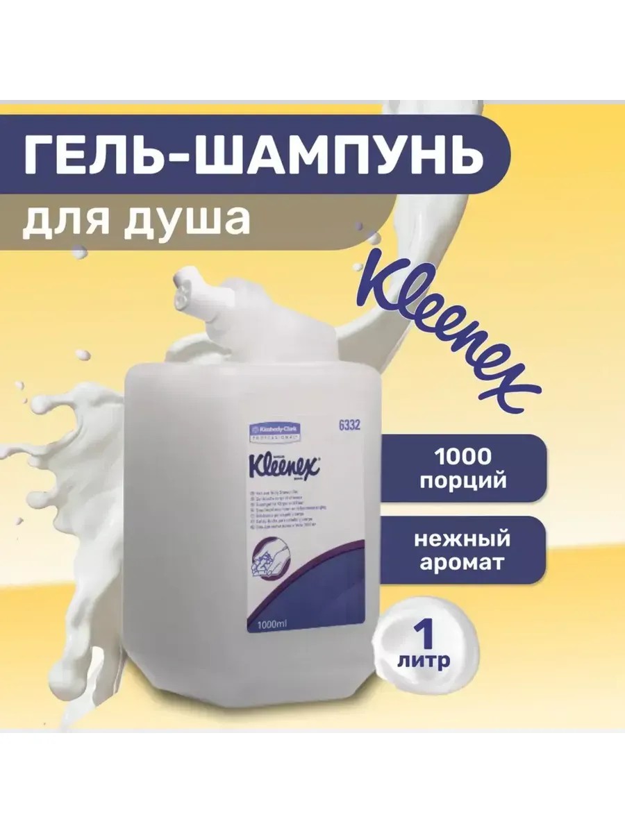 | Комплектация | Гель для душа и шампунь картридж для Kimberly-Clark Kleenex 6332, 1 литр |