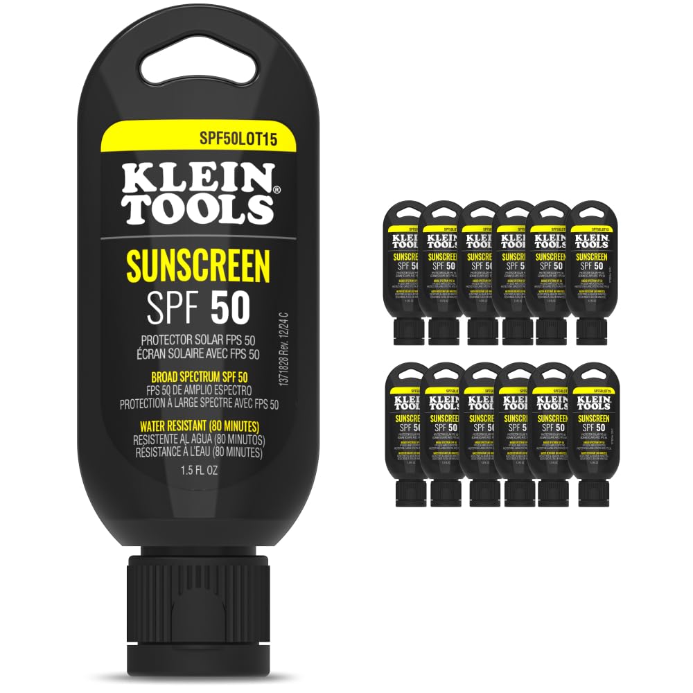 Klein Tools SPF50LOT15 Sunscreen Lotion SPF 50 120-Minute Water-Resistant Broad Spectrum UVA/UVB Sun Protection Non-Greasy 1.5-Ounce Tube 12-Pack