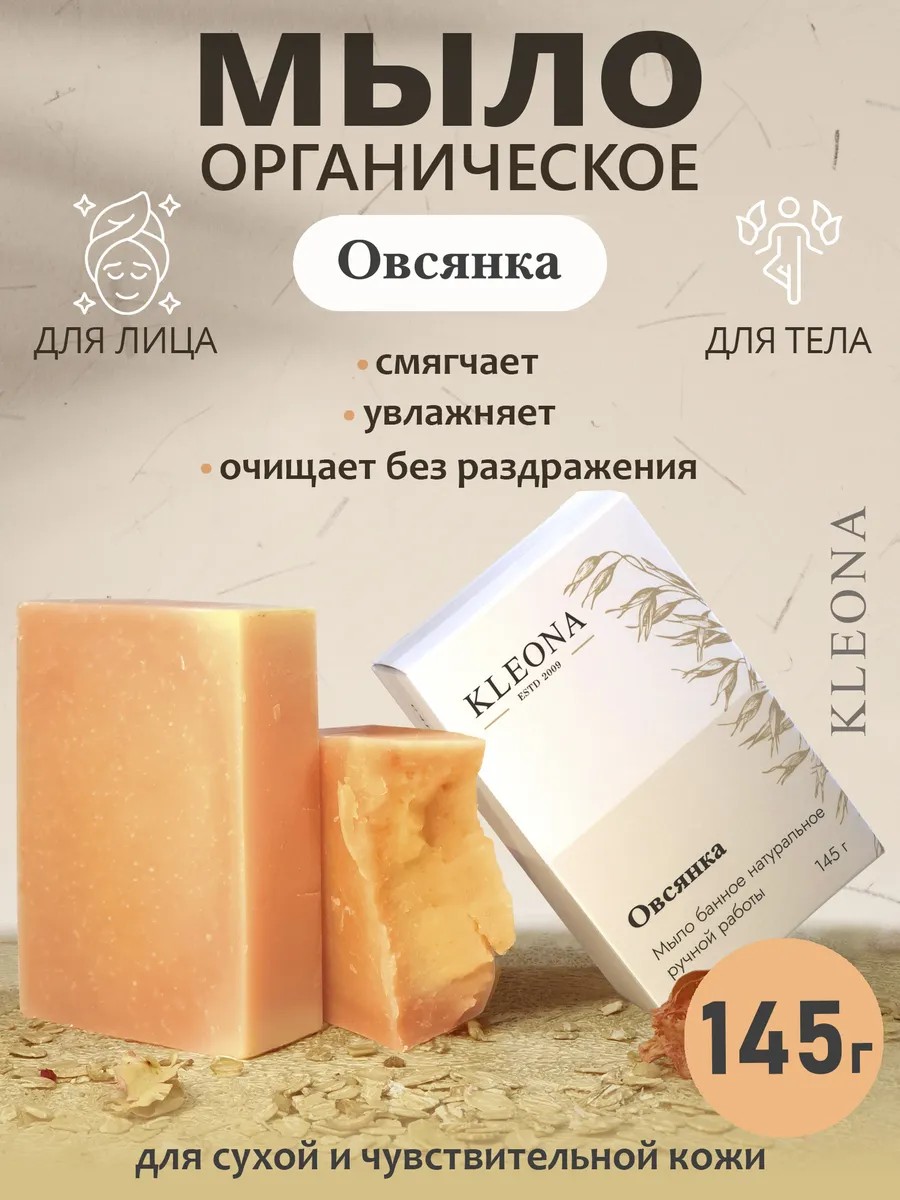 KLEONA Мыло туалетное натуральное Овсянка от сухости