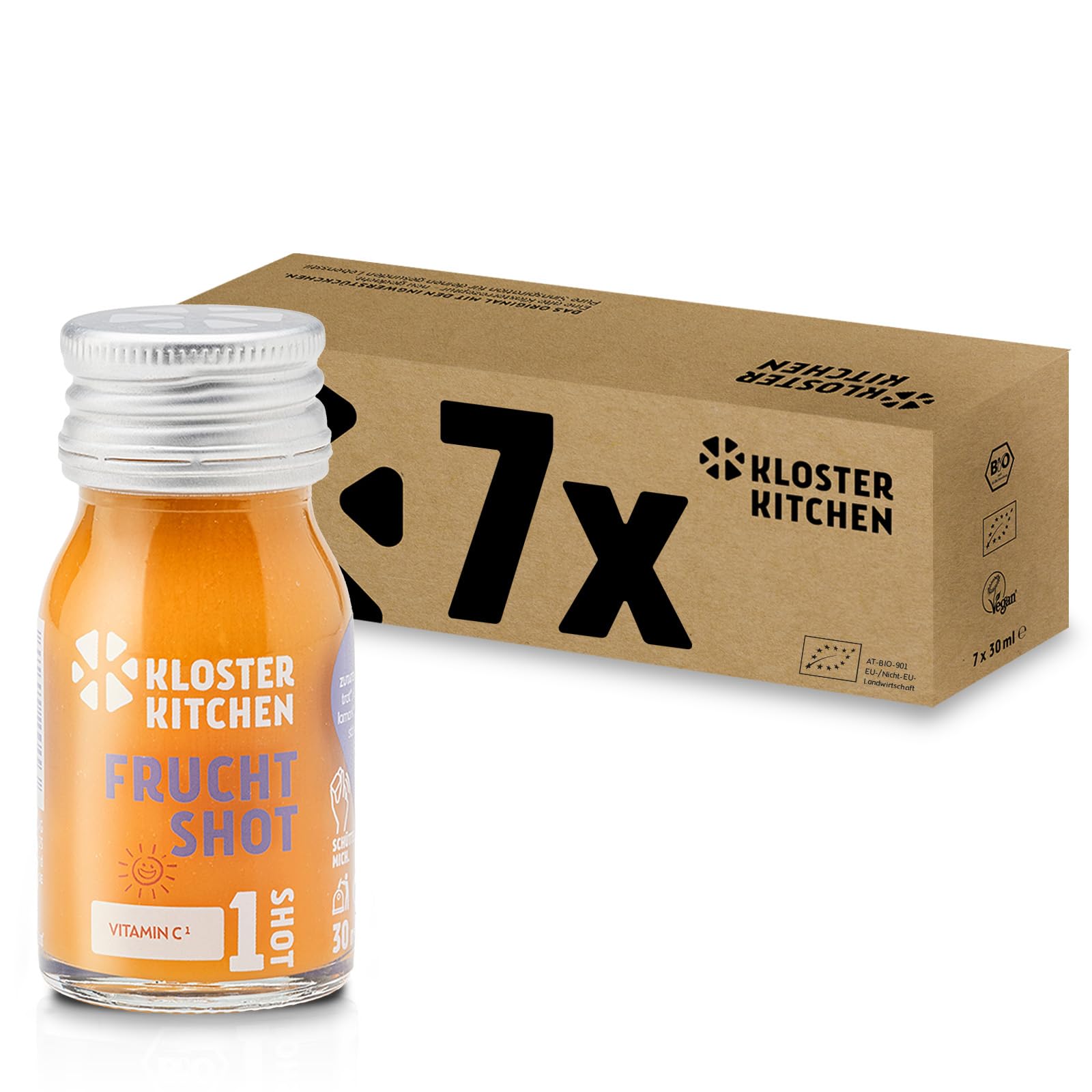 Kloster Kitchen Lot de 7 shots de gingembre bio - 30 ml - Avec véritables morceaux de gingembre - Végétalien dans une bouteille en verre à emporter - Fruité et doux sans additifs et avec douceur