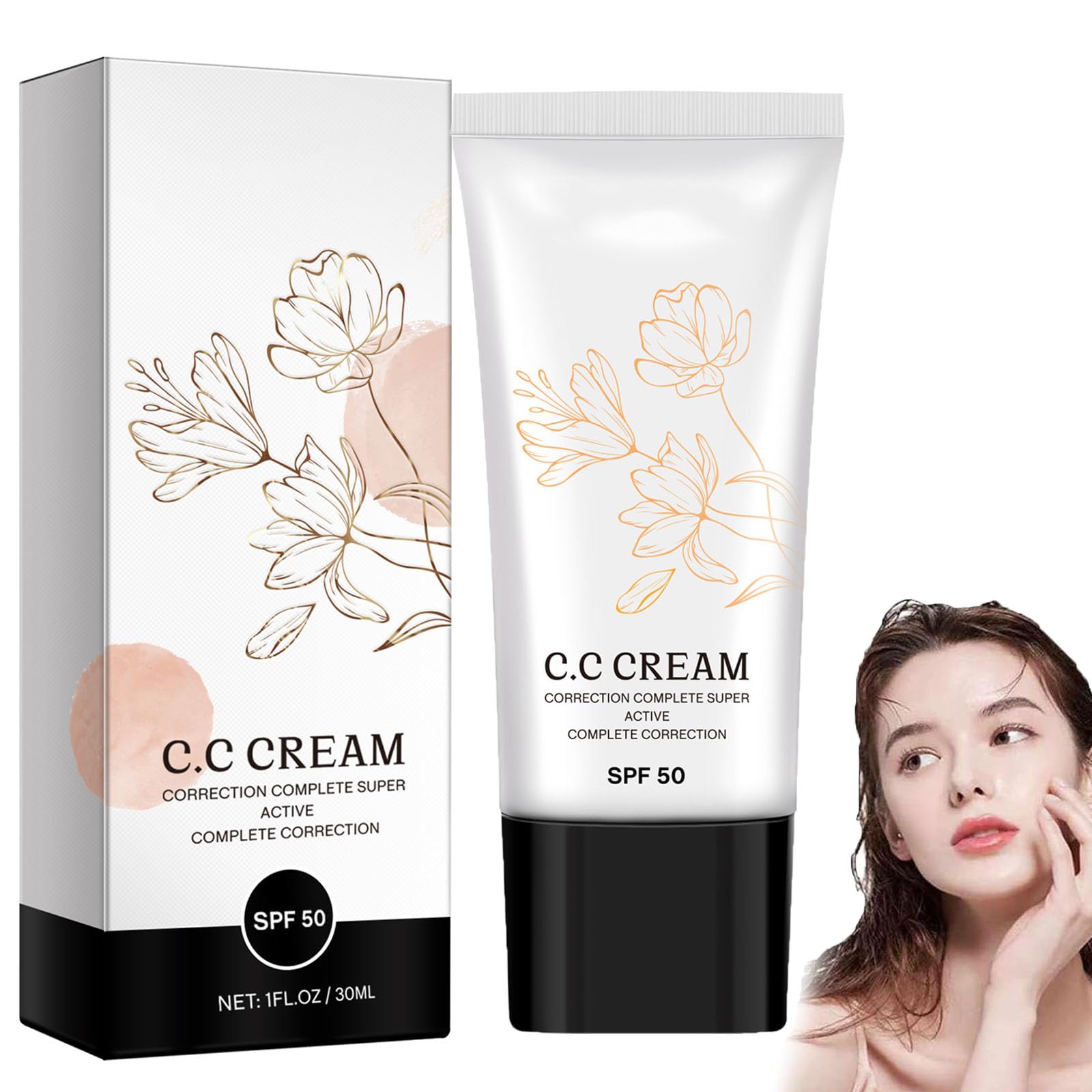 KLOUYHTY Korean Cc Cream With Spf 50 For Older Women Skin Tone Adjusting Cc Cream Spf 50 Self Adjusting Foundation For Mature Skin Full Coverage Color Correcting Foundation For All (1pc)