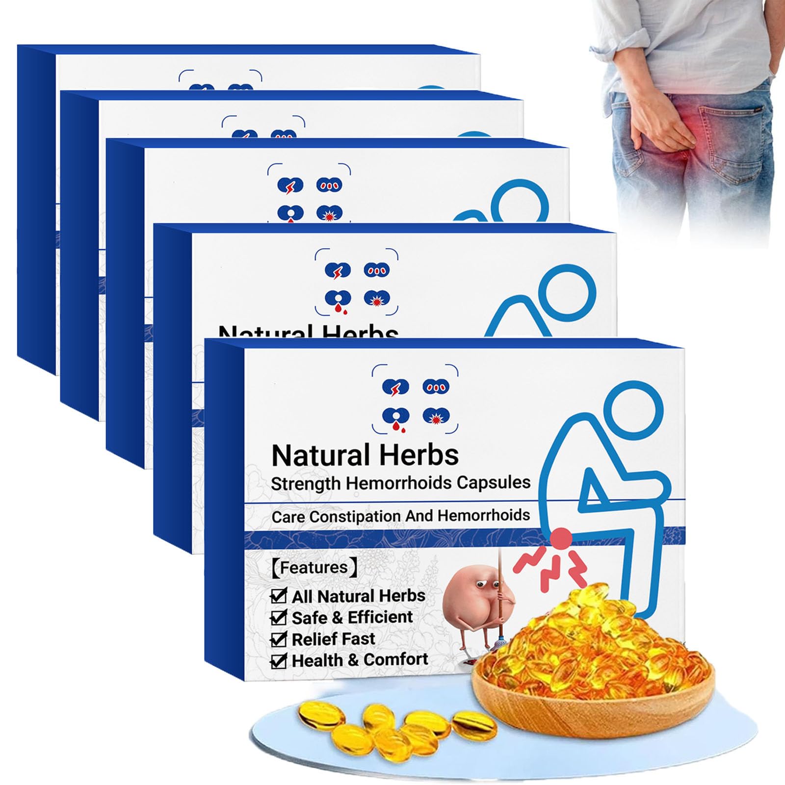 KLOUYHTY Natural Herbal Strength Hemorrhoid Capsules Hemorrhoid Treatment Capsules Hemorrhoid Suppository Treatment Rapid Hemorrhoid Treatment Relief Capsules Pain Or Discomfort Fast (5 Boxes)