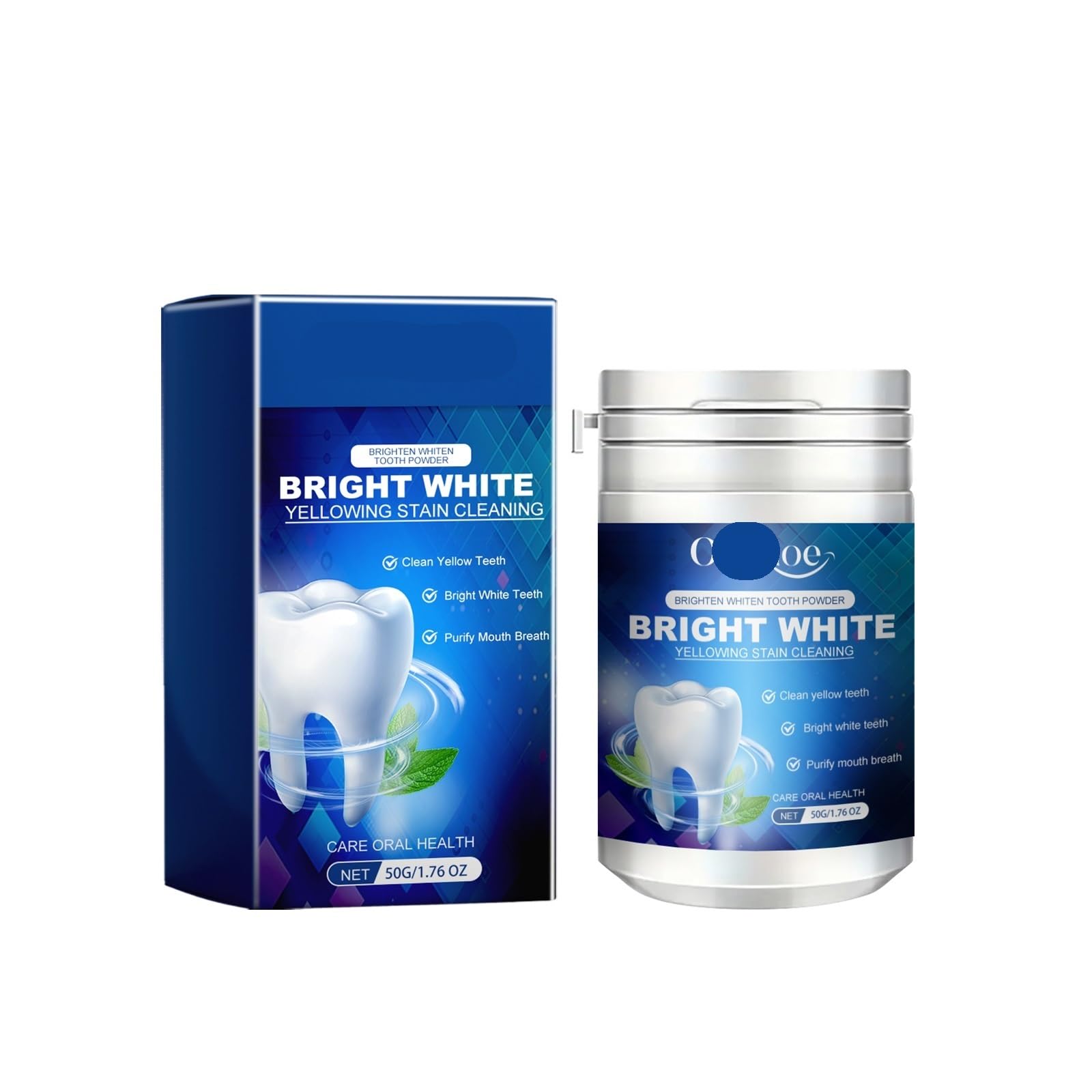 5. Boost Your Confidence : With a whiter smile, step out with increased confidence and charm. 4. Powerful Formula : The strong yet gentle formula breaks down and eliminates stubborn stains, enhancing the overall appearance of your teeth. 3. Easy to Use : Simple 3 - step process. Open the lid, dip your toothbrush into the powder, brush for 2 - 3 minutes, and rinse thoroughly. 2. Effective Stain Removal : Our natural cleaning formula works hard to remove surface stains, helping you achieve a whiter, brighter smile. 1. Instant Freshness : Enjoy a refreshingly cool sensation with every use, leaving your breath feeling fresh and revitalized all day long.