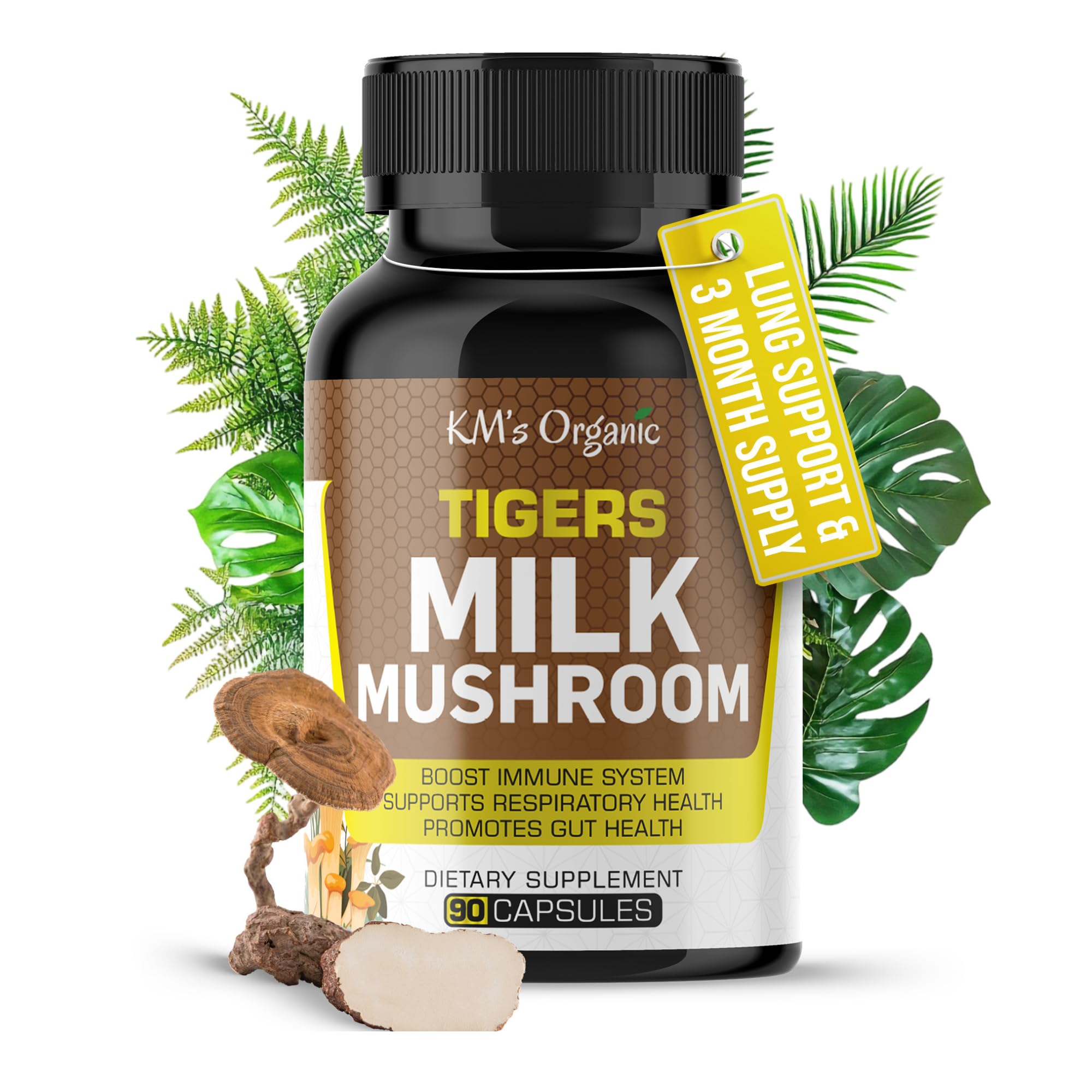 KM's Organic Tiger s Milk Mushroom Supplement 10:1 Extract (Lignosus Rhinocerus) Respiratory & Immune Support Gut Health 450 mg 90 Vegan Capsules