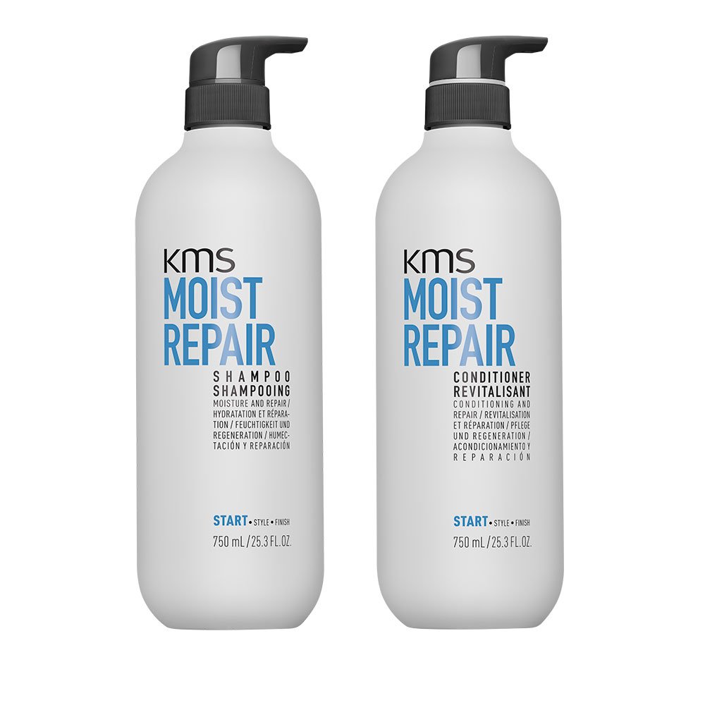 KMS California Moist Repair Shampoo and Conditioner for Dry Hair 750mlKMS California Moist Repair. This detangler hydrates and repairs for improved elasticity and manageability. This shampoo replenishes, moisturizes, and repairs damage. Shampooing et démêlant pour cheveux secs « California moist repair » par KMS de 750 mlCalifornia « Moist Repair » de KMS. Ce démêlant hydrate et répare pour une meilleure élasticité et maniabilité. Ce shampooing régénère, hydrate et répare les dommages.
