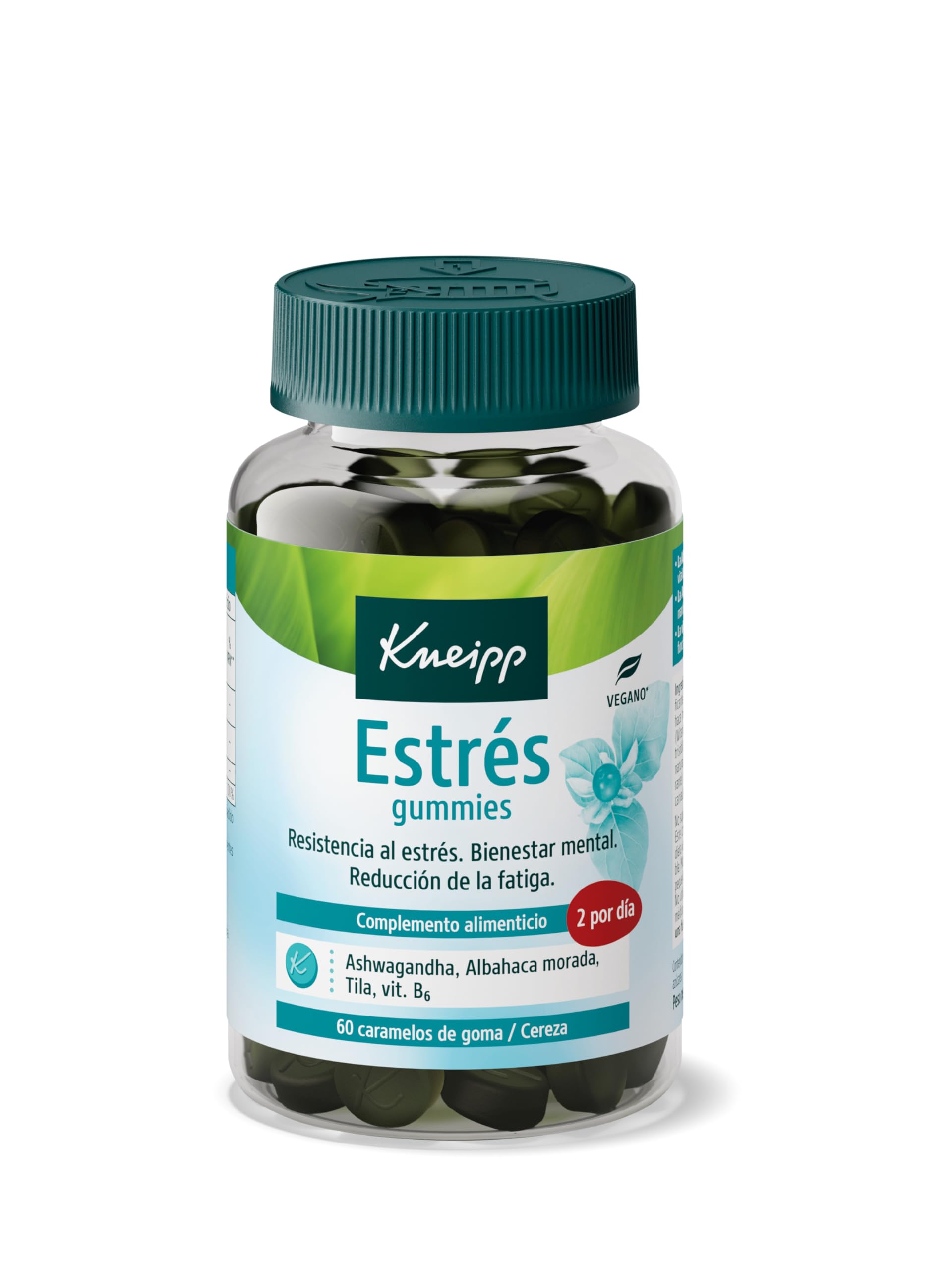 Kneipp Gummies Stress is the perfect supplement to help you manage stress and promote mental well-being in your daily life. Our formula combines natural ingredients such as purple basil, tila, ashwagandha and vitamin B6 to help you tackle daily stress in a more balanced and healthier way. Purple basil is known for its ability to maintain stress resistance and vitality. Moreover, it contains antioxidants that are beneficial for your overall health. Ashwagandha is an ally in times of nervousness and restlessness and helps to maintain relaxation and emotional balance. Vitamin B6 helps reduce fatigue and fatigue so you can tackle your daily challenges with more vitality. Our rubbers have a delicious cherry flavor, which makes drinking a pleasant experience. They are vegan, contain no animal substances, no artificial flavors or sweeteners and are gluten and lactose free, making them suitable for a wide range of people with different dietary preferences. For best results, it is recommended to take 2 gummy bears per day. INGREDIENTS glucose syrup, sugar, water, pectin E-440 (gelling agent), citric acid E-330 (souring agent), purple basil leaf extract (Ocimum sanctum), aswagandha root extract (Witania somnifera), tilia cordata extract, trisodium citrate E-3311. (corrector acid), vegetable oil (coconut), natural flavouring, copper-chlorophyll complexes E-141 (colour), vitamin B6 (pyridoxine hydrochloride), carnauba wax E-903 (solvent). SAFETY WARNING Do not exceed the expressly recommended daily dose. This dietary supplement is not a substitute for a varied and balanced diet and a healthy lifestyle. Keep out of the reach and sight of younger children. Not suitable for children under 12 years. Store in a cool, dry place and keep away from heat sources. See moreAbout KNEIPP: More than 125 years of experience in supplying a range of body care, nutritional supplements and herbal teas on a plant basis and with carefully selected ingredients. Cherry Flavor: Relieve your stress and stay calm while enjoying the delicious cherry flavor of these gummy bears. Benefits: Purple basil, tila and ashwagandha work together to maintain relaxation and emotional balance and help you cope with daily stress with more vitality. Natural ingredients: With purple basil, tila, ashwagandha and vitamin B6. Vegan and free from animal substances. No artificial flavors or sweeteners, gluten-free and lactose-free. KNEIPP Stress: Dietary supplement in rubber format that helps maintain stress resistance and promote mental well-being and reduce fatigue and fatigue.Kneipp Gummies Stress met paarse basilicum, tila, ashwagandha en vitamine B6 helpt bij stress, geestelijk welzijn en vermindert vermoeidheid 60 gummibeertjes Kneipp Gummies Stress is de perfecte aanvulling om je te helpen met stress om te gaan en het geestelijke welzijn in je dagelijks leven te bevorderen. Onze formule combineert natuurlijke ingrediënten zoals paarse basilicum, tila, ashwagandha en vitamine B6 om je te helpen de dagelijkse stress op een meer evenwichtige en gezondere manier aan te pakken. Paarse basilicum staat bekend om zijn vermogen om stressbestendigheid en vitaliteit te behouden. Bovendien bevat het antioxidanten die gunstig zijn voor je algemene gezondheid. Ashwagandha is een bondgenoot in tijden van nervositeit en rusteloosheid en helpt om ontspanning en emotioneel evenwicht te behouden. Vitamine B6 helpt vermoeidheid en vermoeidheid te verminderen, zodat je je dagelijkse uitdagingen met meer vitaliteit kunt aanpakken. Onze rubbers hebben een heerlijke kersensmaak, wat het drinken tot een aangename ervaring maakt. Ze zijn veganistisch, bevatten geen dierlijke stoffen, geen kunstmatige aroma's of zoetstoffen en zijn gluten- en lactosevrij, waardoor ze geschikt zijn voor een groot aantal mensen met verschillende voedingsvoorkeuren. Voor de beste resultaten wordt aanbevolen om 2 gummibeertjes per dag in te nemen. INGREDIËNTEN glucosesiroop, suiker, water, pectine E-440 (geleermiddel), citroenzuur E-330 (zuurmiddel), paars basilicumbladerextract (Ocimum sanctum), aswagandha-wortelextract (Witania somnifera), tilia cordata extract, trinatriumcitraat E-3311. (corrector zuur), plantaardige olie (kokos), natuurlijk aroma, koper-chlorofylcomplexen E-141 (kleurstof), vitamine B6 (pyridoxinehydrochloride), carnaubawas E-903 (oplosmiddel). VEILIGHEIDSWAARSCHUWING De uitdrukkelijk aanbevolen dagelijkse dosis niet overschrijden. Dit voedingssupplement is geen vervanging voor een gevarieerde en evenwichtige voeding en een gezonde levensstijl. Buiten het bereik en zicht van jongere kinderen bewaren. Niet geschikt voor kinderen onder de 12 jaar. Op een koele, droge plaats bewaren en uit de buurt van warmtebronnen houden. Meer bekijkenOver KNEIPP: meer dan 125 jaar ervaring in het leveren van assortiment lichaamsverzorging, voedingssupplementen en kruidenthee op plantaardige basis en met zorgvuldig geselecteerde ingrediënten. Kersensmaak: verlicht je stress en blijf kalm, terwijl je geniet van de heerlijke kersensmaak van deze gummibeertjes. Voordelen: Paarse basilicum, tila en ashwagandha werken samen om ontspanning en emotioneel evenwicht te behouden en helpen je om met meer vitaliteit om te gaan met dagelijkse stress. Natuurlijke ingrediënten: Met paarse basilicum, tila, ashwagandha en vitamine B6. Veganistisch en vrij van dierlijke stoffen. Geen kunstmatige aroma's of zoetstoffen, glutenvrij en lactosevrij. KNEIPP Stress: Voedingssupplementen in rubberformaat dat helpt bij het behoud van stressbestendigheid en het geestelijk welzijn bevorderen en vermoeidheid en vermoeidheid verminderen.